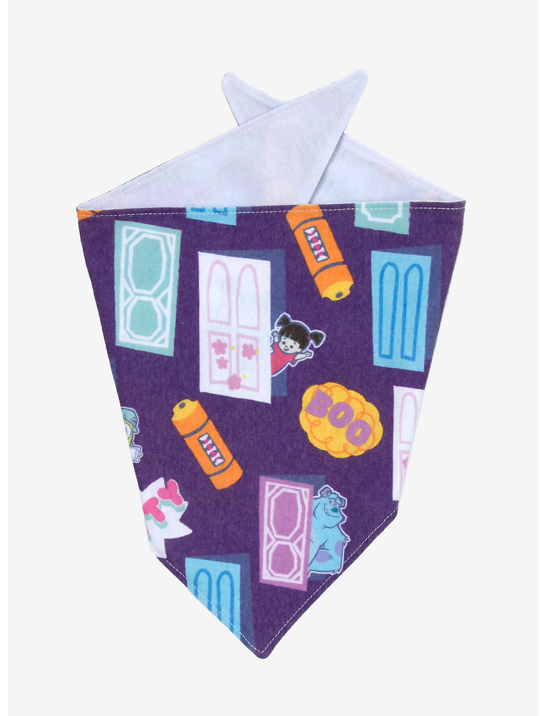 ¡Tu amigo peludo puede tener una aventura aterradora en el piso con este pañuelo para mascotas de Monsters, Inc.! Para celebrar el vigésimo aniversario del clásico de Disney • Pixar, este pañuelo presenta a Boo, Mike y Sulley asomándose por un estampado de puertas espantosas.
