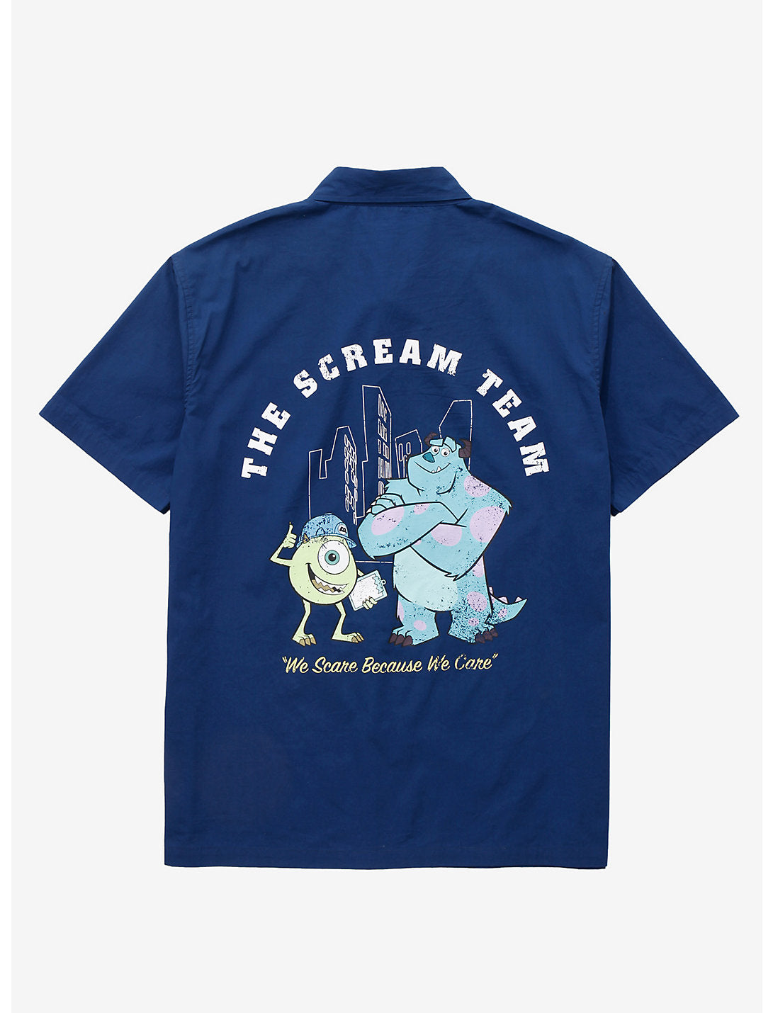 - ¡Representa al mejor equipo de Scream de Monsters, Inc. con este botón tejido! En la parte de atrás, entre las letras "The Scream Team" y "We Scare because We Care", la pareja de Disney • Pixar de Mike y Sully posan con orgullo para otra jornada de buenos sustos y buenos momentos. ¡También presenta dos diseños de parche en la parte delantera para una apariencia auténtica inspirada en el lugar de trabajo!