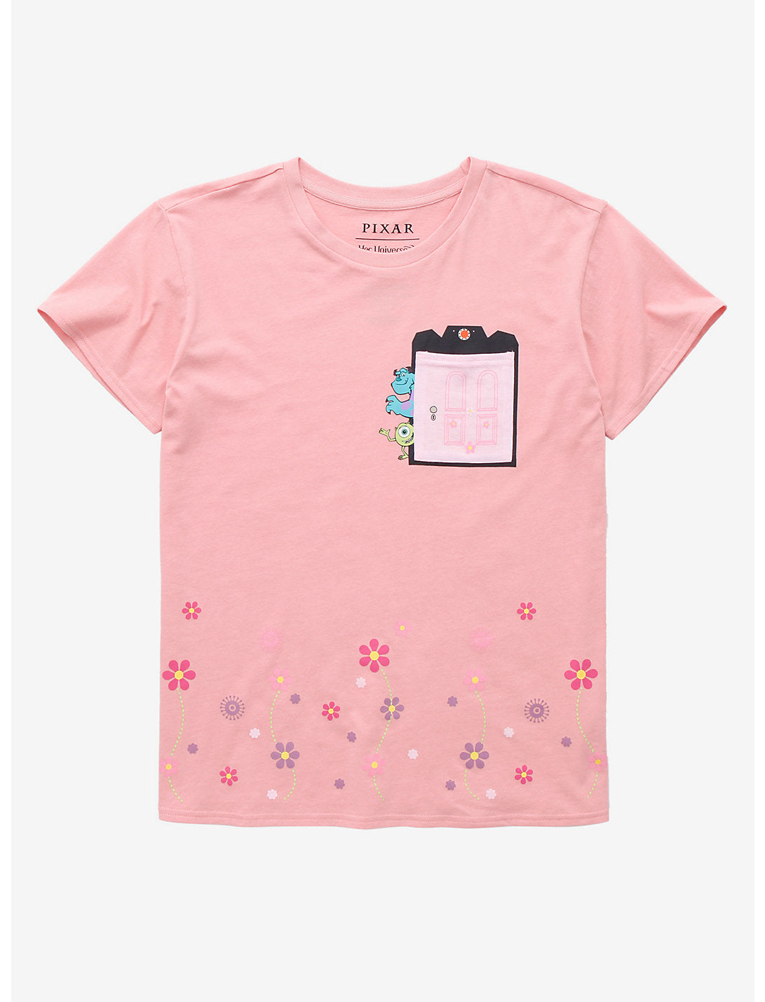 ¡Lleva un poco de moda de Monstropolis a tu guardarropa gracias a esta camiseta de bolsillo de Monsters, Inc.! Con el dúo de mejores amigos de Disney • Pixar, Sully y Mike se asoman desde el bolsillo delantero de esta camiseta, diseñada para parecerse a uno de los portales de la película. También presenta un patrón de diseño floral en la parte inferior. ¡Ser un gran asustador nunca se había visto tan lindo!