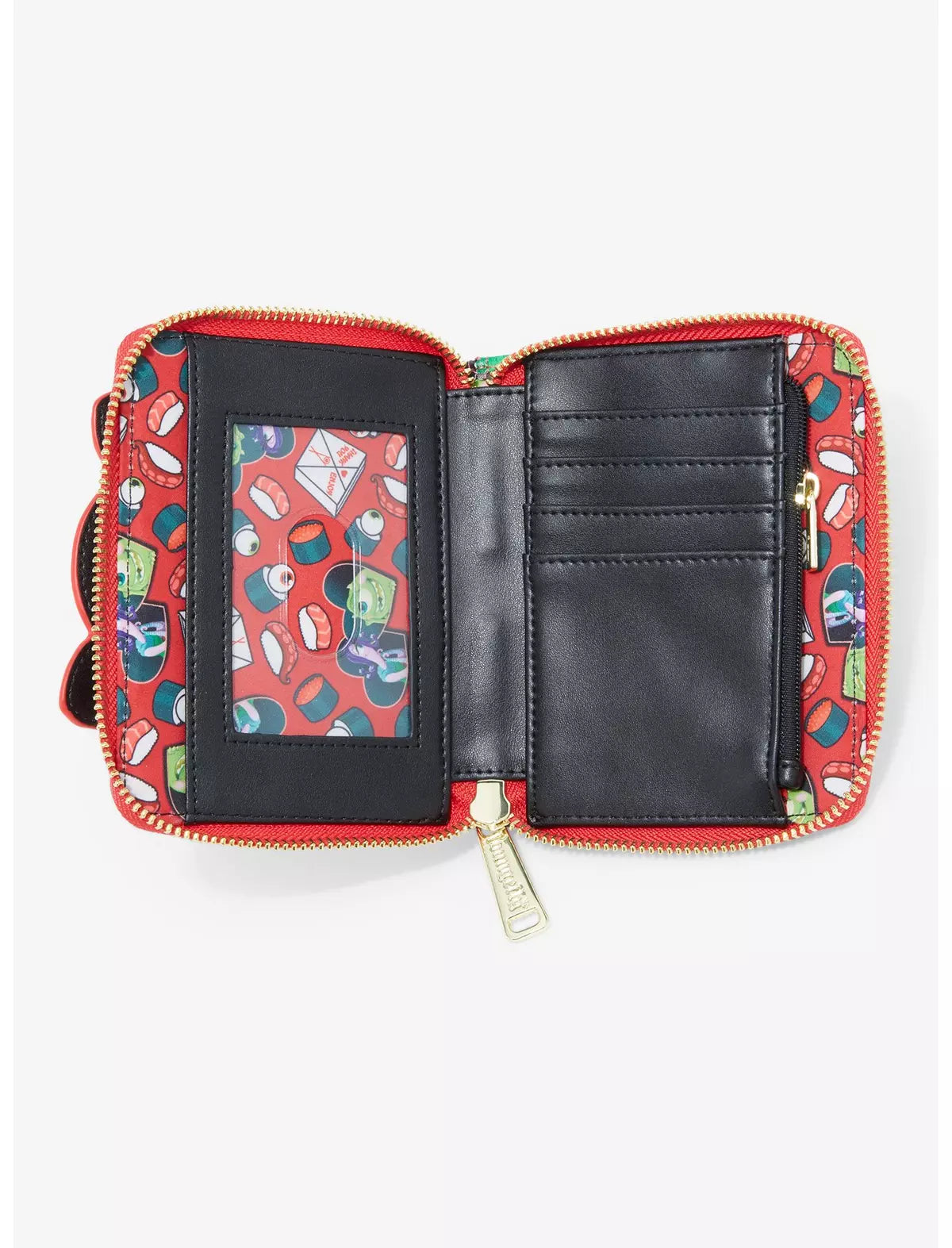¡Hay un niño aquí, un niño humano! ¡Revive a Boo enviando el restaurante de Harryhausen al caos con esta billetera de Monsters, Inc.! Un adorable aplique de Boo sonríe sobre una caja de comida para llevar con letras grabadas, mientras que el otro lado presenta a Mike y Celia en relieve en una cita nocturna mientras Sully tiene una crisis existencial. Dentro de la bolsa con cremallera, encontrará cuatro ranuras para tarjetas y una funda transparente para identificación en medio de un estampado de sushi por toda la prenda. ¡Es un dulce guiño al momento icónico de la película!