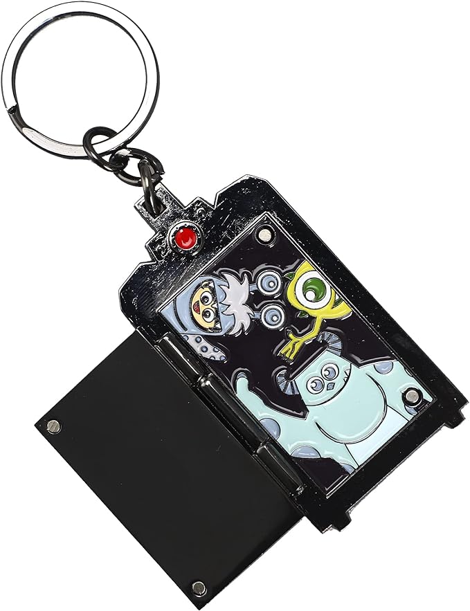 - Diseño personalizado: el llavero de puerta de Boo's de Monsters Inc. cuenta con la colorida puerta de Boo, que se abre para revelar a Mike, Sulley y Boo! Este colorido llavero tiene ilustraciones rellenas de esmalte y herrajes de metal negro.