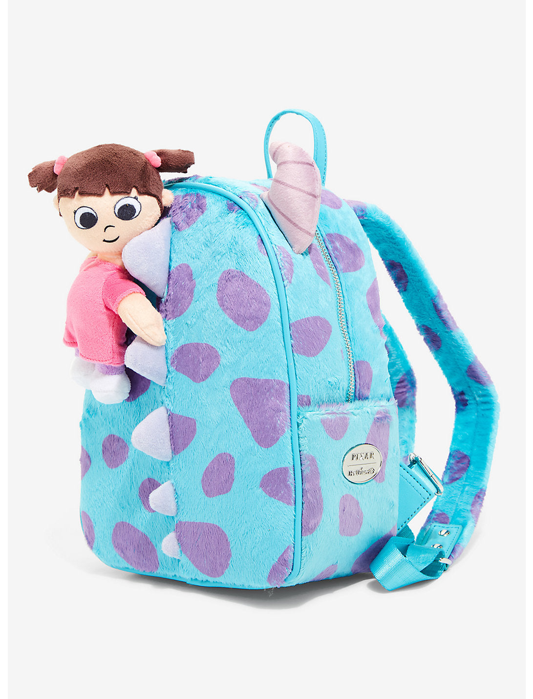 ¡Boo se coló en tu guardarropa con esta mini mochila de Disney • Pixar de Her Universe! ¡Vistos como un adorno de felpa súper lindo que cuelga de la espalda de Sulley, estos amigos inesperados están listos para agregar un grito a tu próximo atuendo! Inspirada en Monsters Inc., esta mini mochila cuenta con herrajes plateados, correas ajustables para los hombros, insignia de la marca esmaltada y bolsillo interior con cremallera.