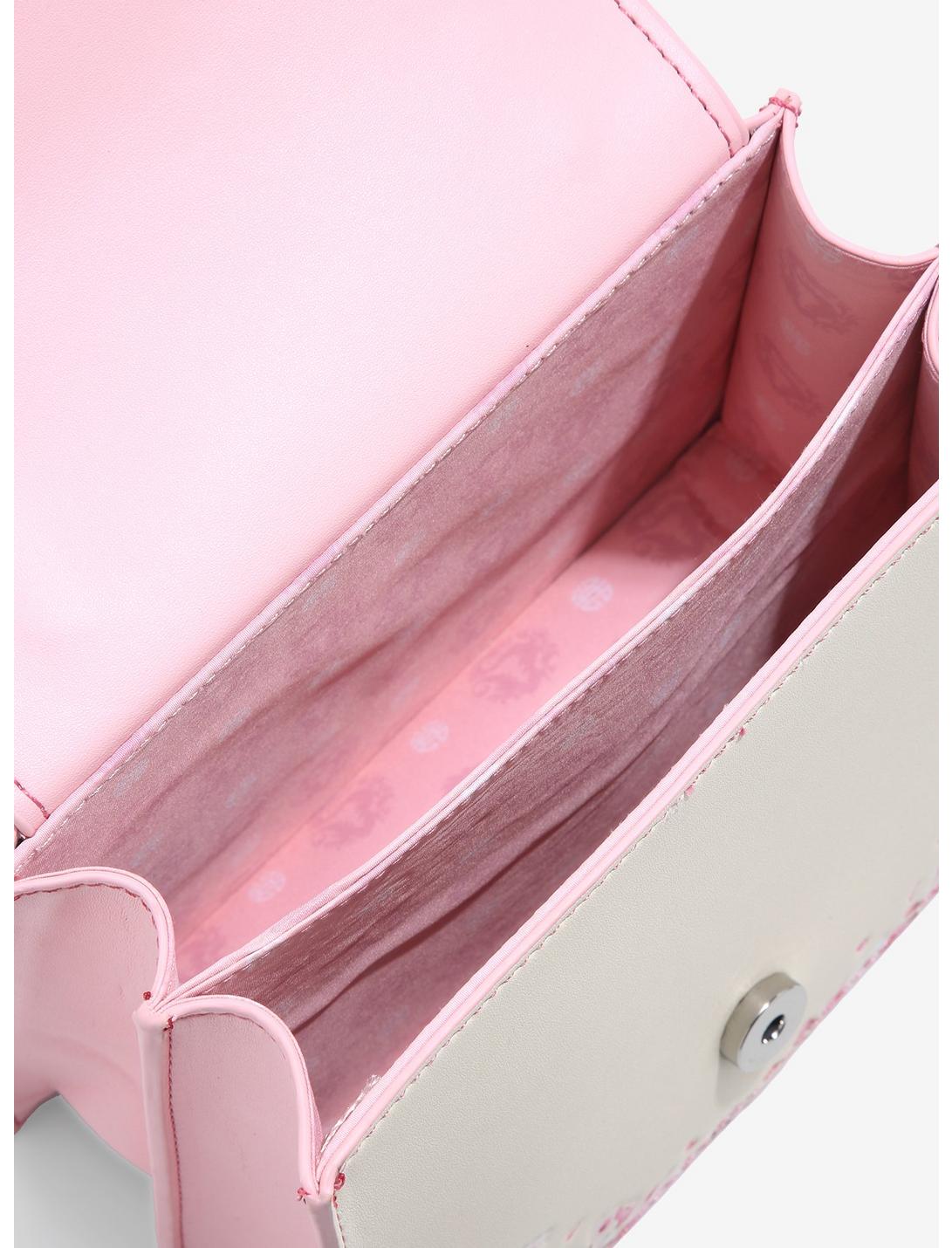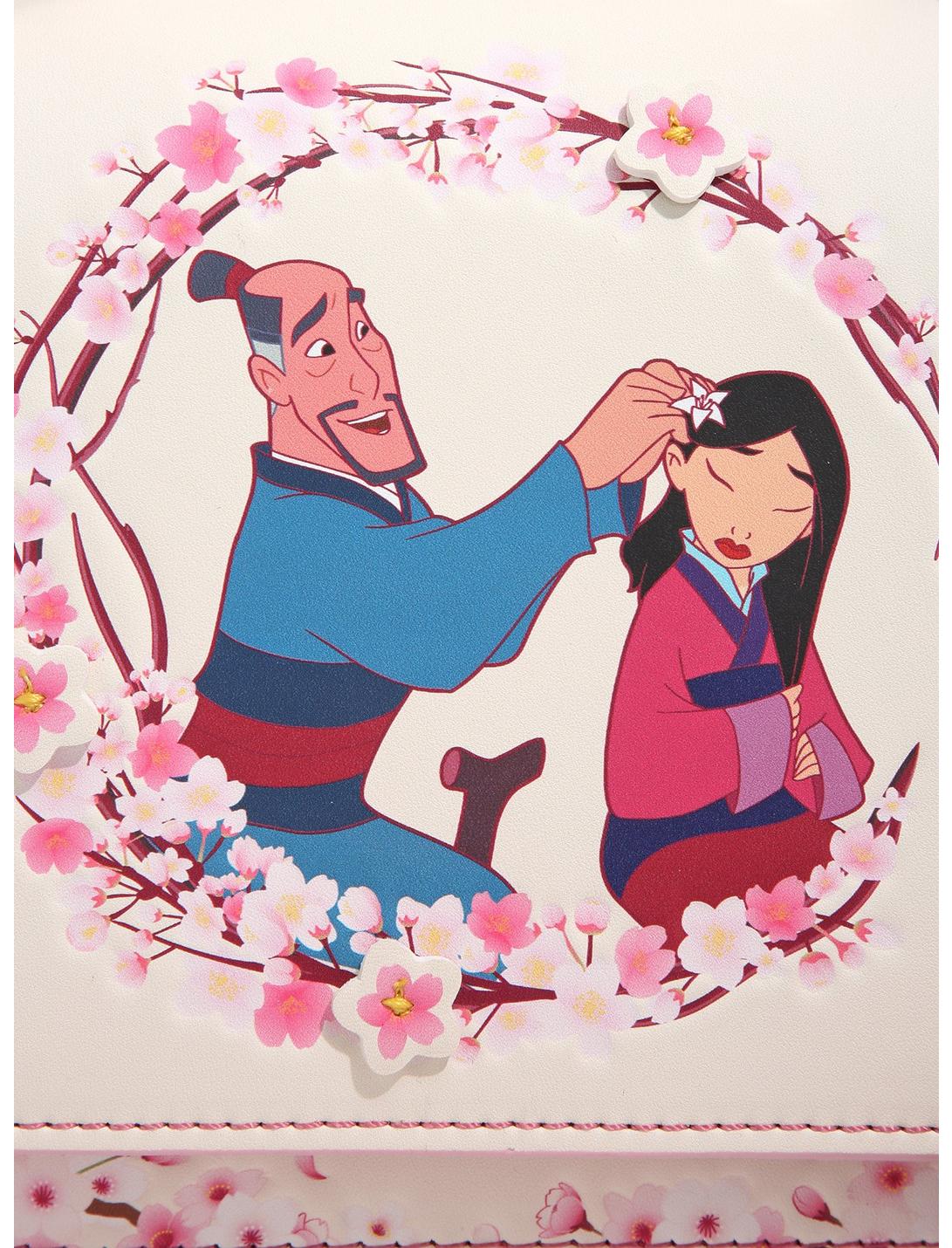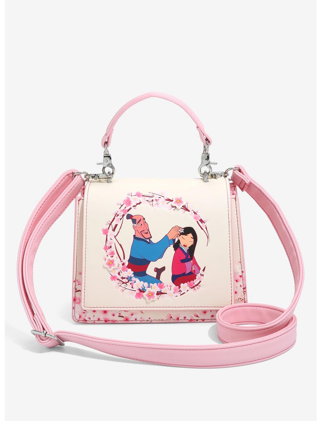 ¡Aporta un toque floral de Disney a todos tus conjuntos con este bolso Loungefly inspirado en Mulan! Con un gráfico de Hua Zhou y Mulan decorado con un marco de flores de magnolia en el frente, este bolso también cuenta con una correa para el hombro ajustable y removible rosa a juego, herrajes plateados, un patrón de forro interior floral y una silueta de Mushu en la parte posterior. .