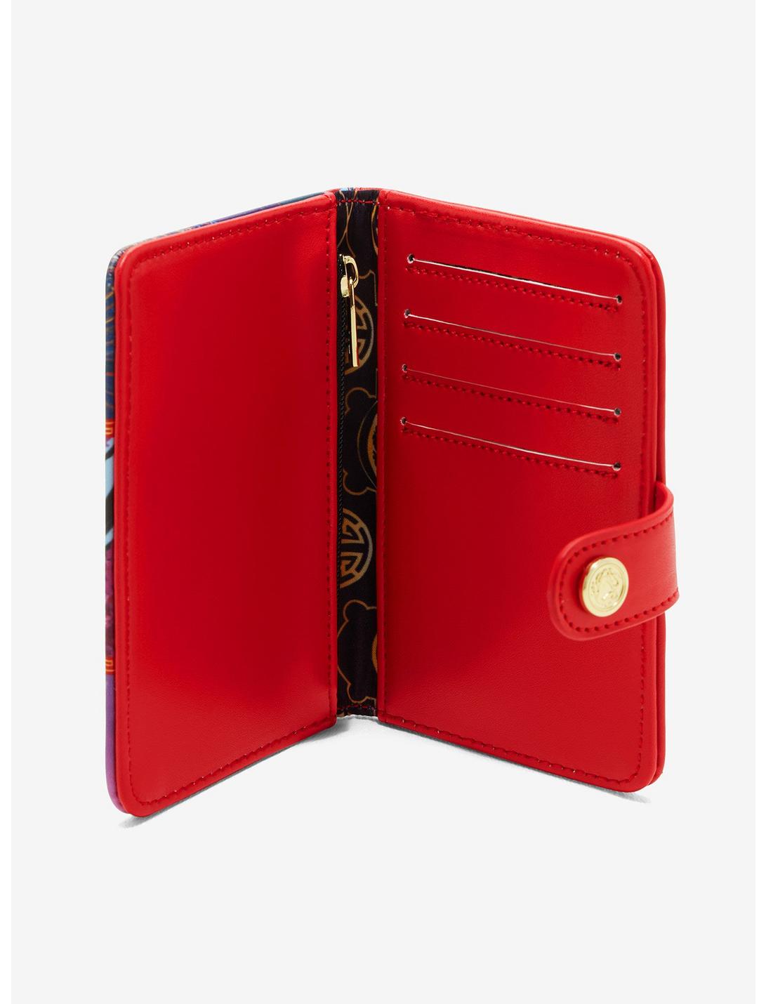 ¡Tu princesa de Disney favorita está aquí para aportar su estilo a tu colección de accesorios con esta billetera Loungefly! Inspirada en Mulan, esta billetera muestra a la guerrera con tres atuendos en un diseño de paneles. Con detalles dorados de piel sintética en la parte posterior, esta billetera tiene cuatro ranuras para tarjetas y un monedero para mantener seguros sus elementos esenciales.