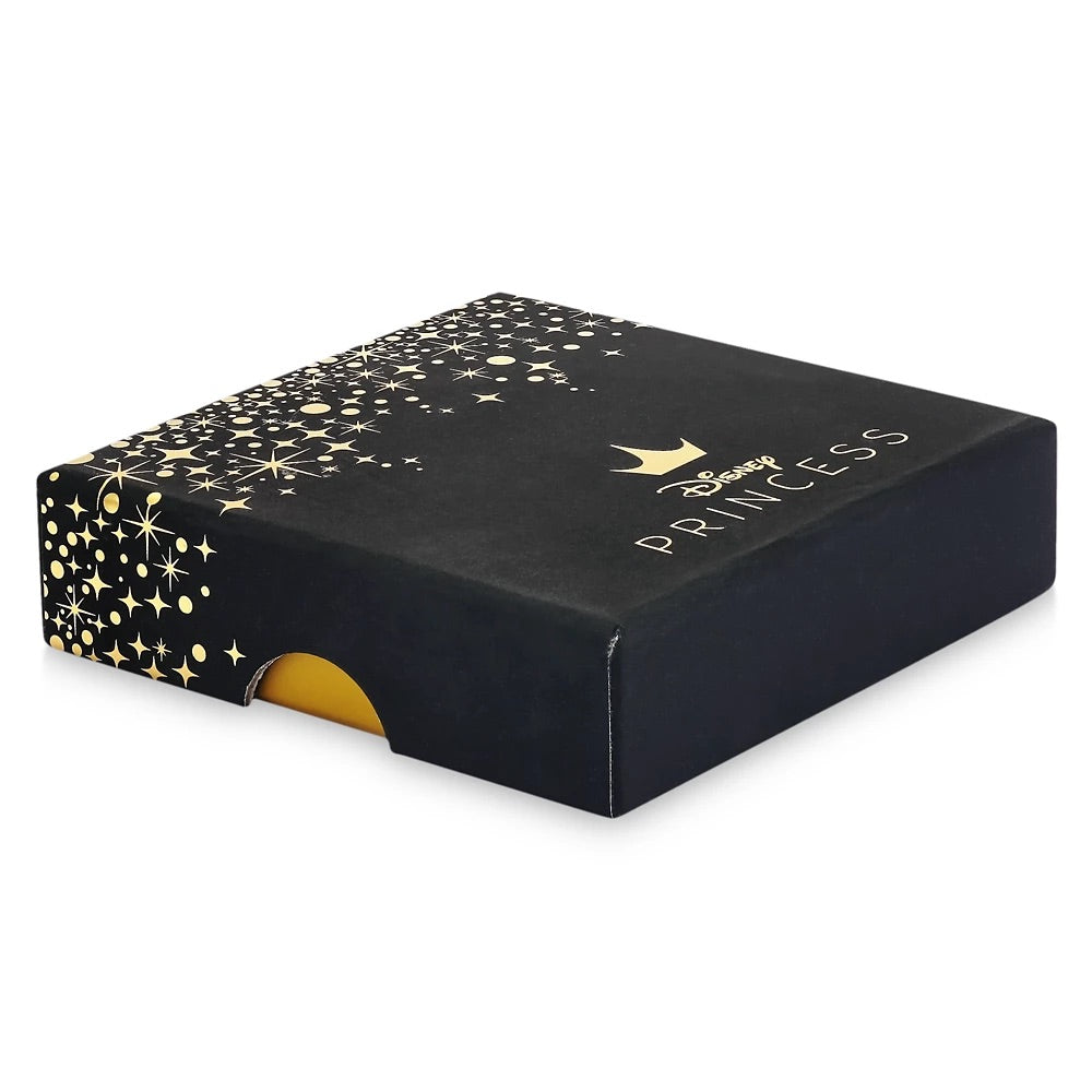 Incluye una bolsa con cordón decorativa de la Princesa de Disney en color negro y dorado y una caja a juego.
