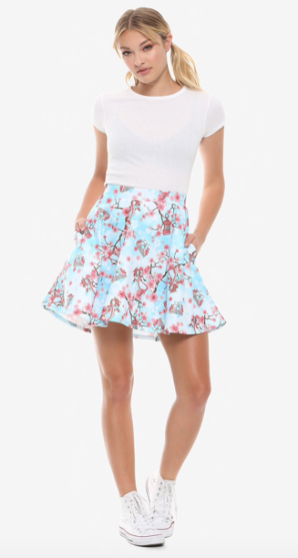 Sé la flor más bella de todas con esta falda skater estampada de Mulan.