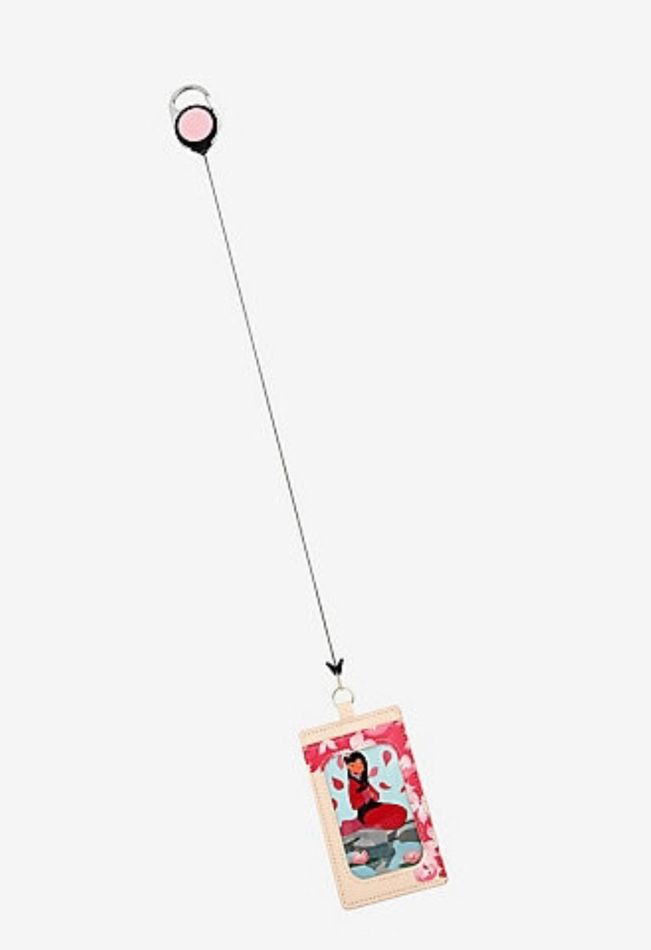 Asegúrate de que tu identificación refleje quién eres dentro con la ayuda de este cordón de cuero sintético Inspirado en Disney Mulan, presenta un clip de bolsa retráctil con un diseño de flor de cerezo, así como un gráfico de la princesa guerrera en el titular de la identificación. 10/13/20 - 10/24/20 pre orden
