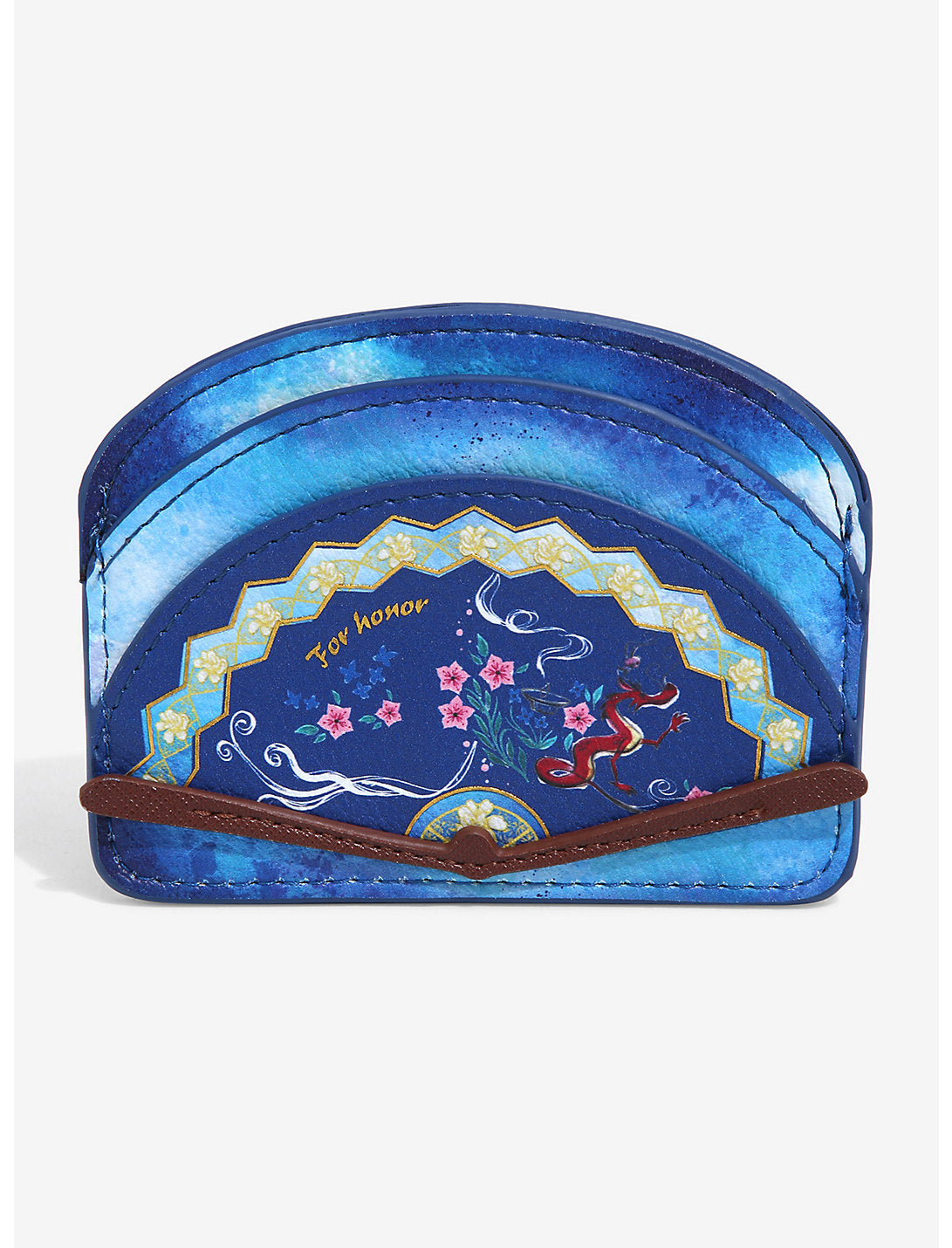 - ¡Retoca tu guardarropa con este elegante accesorio inspirado en Mulan de Disney! Este tarjetero de Danielle Nicole, con la princesa de Disney en una feroz postura de lucha con la espada en la parte delantera, también luce una aplicación troquelada de un abanico tradicional en el bolsillo delantero de la tarjeta, con detalles florales, letras "For honor" y Mushu. mientras posa. ¡También cuenta con un bolsillo en el medio!