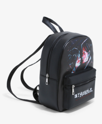 Que todos sepan que ser emo no es una fase al usar esta mini mochila. Presenta el diseño gráfico del álbum en la parte delantera y el diseño de texto grabado en relieve "My Chemical Romance; Three Cheers for Sweet Revenge" en el bolsillo con cremallera. Bolsillo interior abierto y correas ajustables.