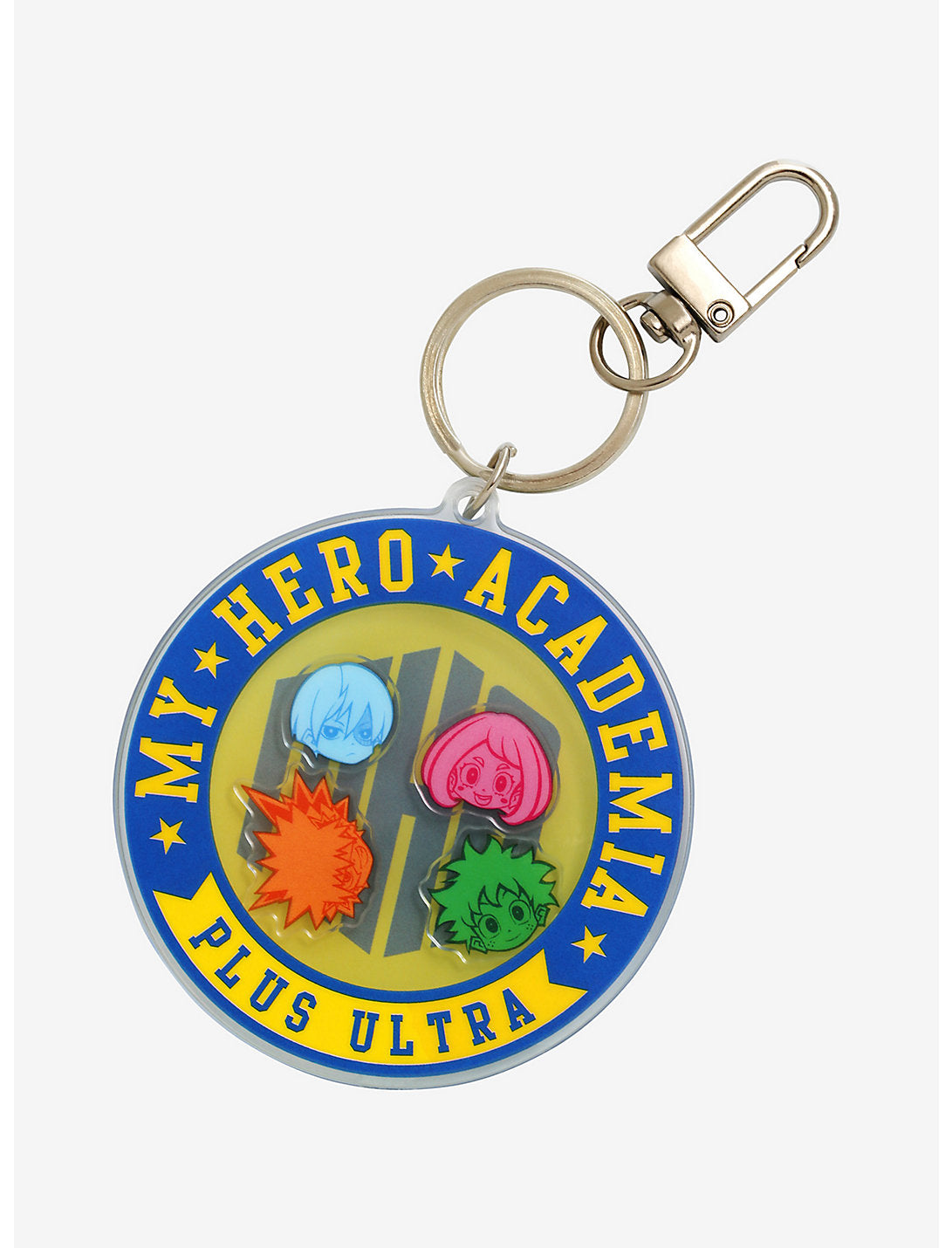 ¡Deku, Todoroki, Ochako y Bakugo están aquí para guardar tus llaves! Los héroes en entrenamiento del anime épico My Hero Academia aparecen como pequeños amuletos que se mueven cuando agitas este llavero "Plus Ultra". Adjúntelo a sus llaves y estará protegido contra cualquier nomu que pueda interponerse.