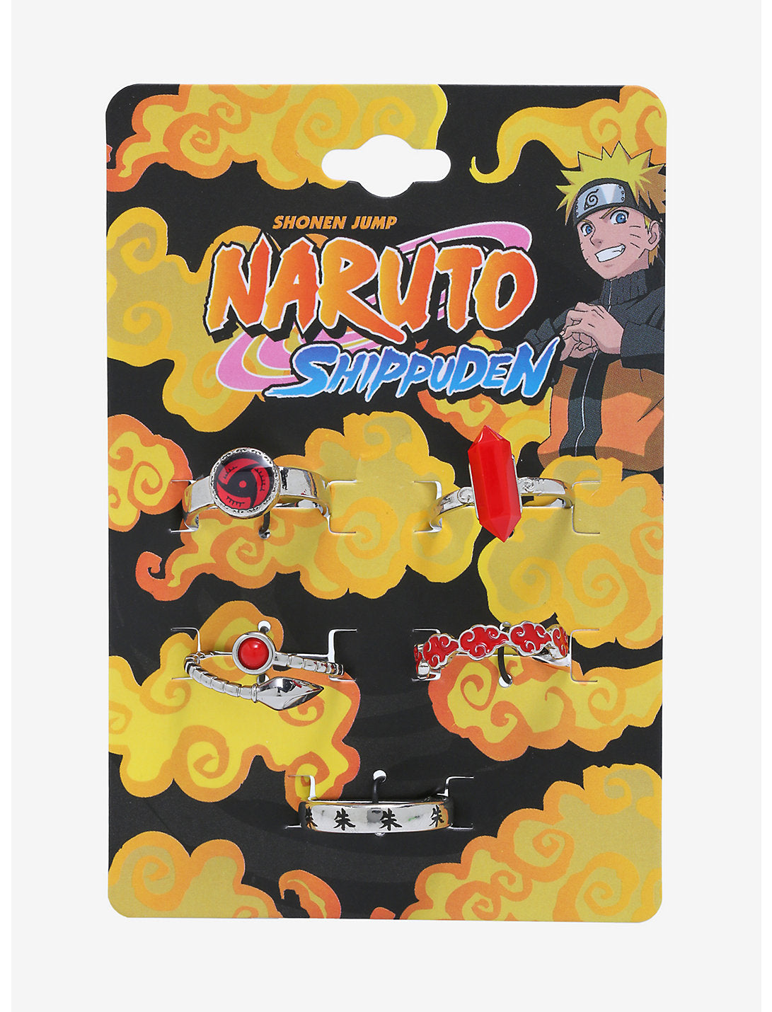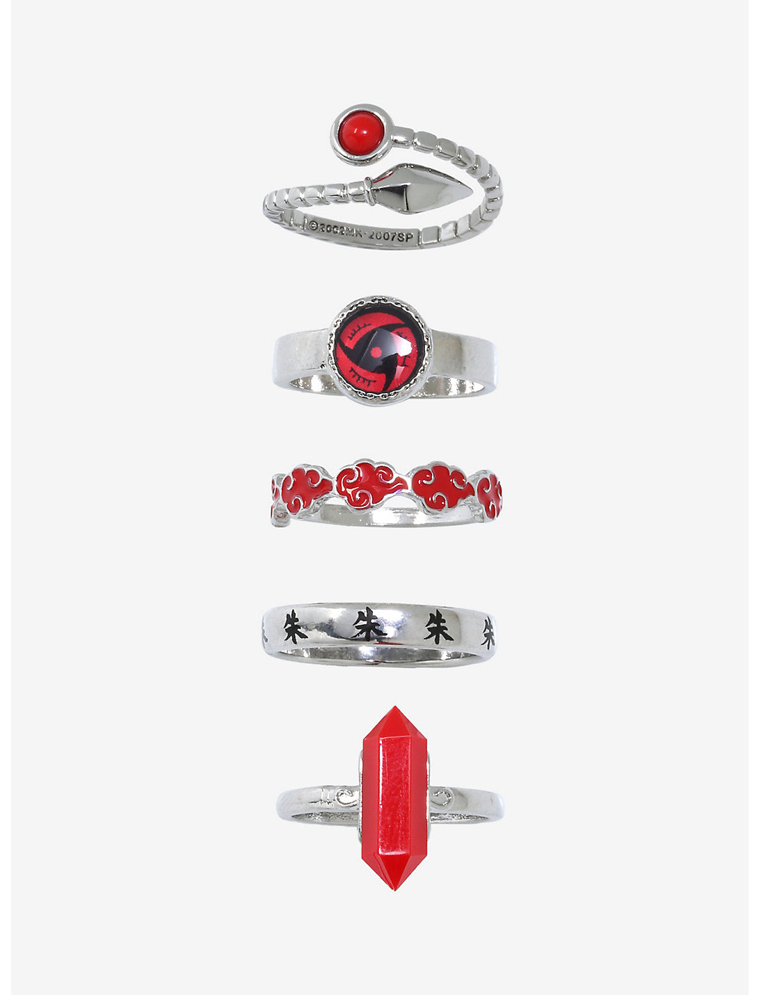 ¡Representa tu anime favorito con estilo con este juego de anillos de Naruto Shippuden! Este conjunto incluye anillos plateados inspirados en Itachi, con detalles de cristal rojo, nube de Akatsuki, daga y símbolo de Mangekyo Sharingan.