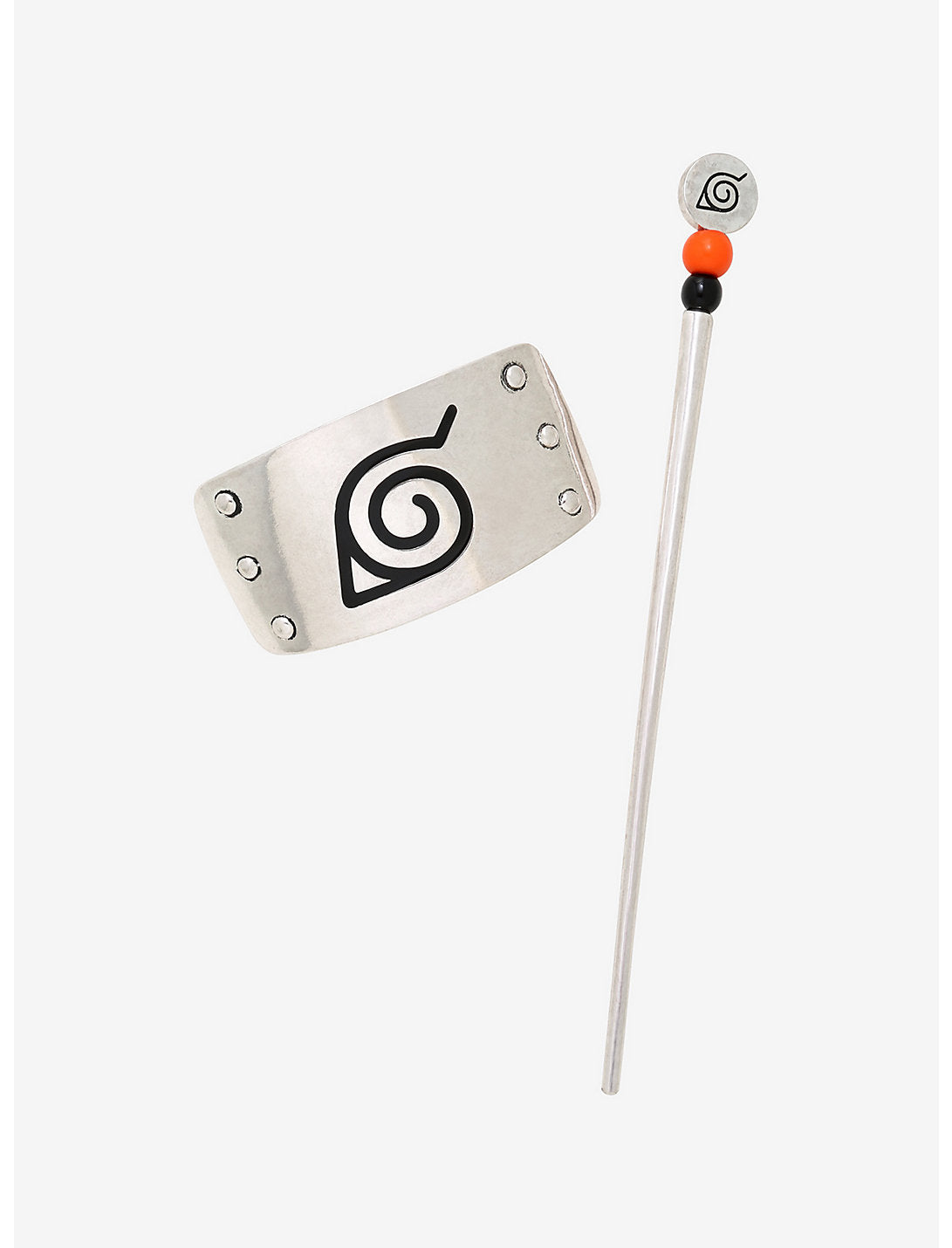 Mantén tu cabello hacia atrás mientras entrenas para ser un shinobi sigiloso. Este alfiler de moño de Naruto Shippuden presenta un diseño inspirado en el protector de frente de Hidden Leaf Village.