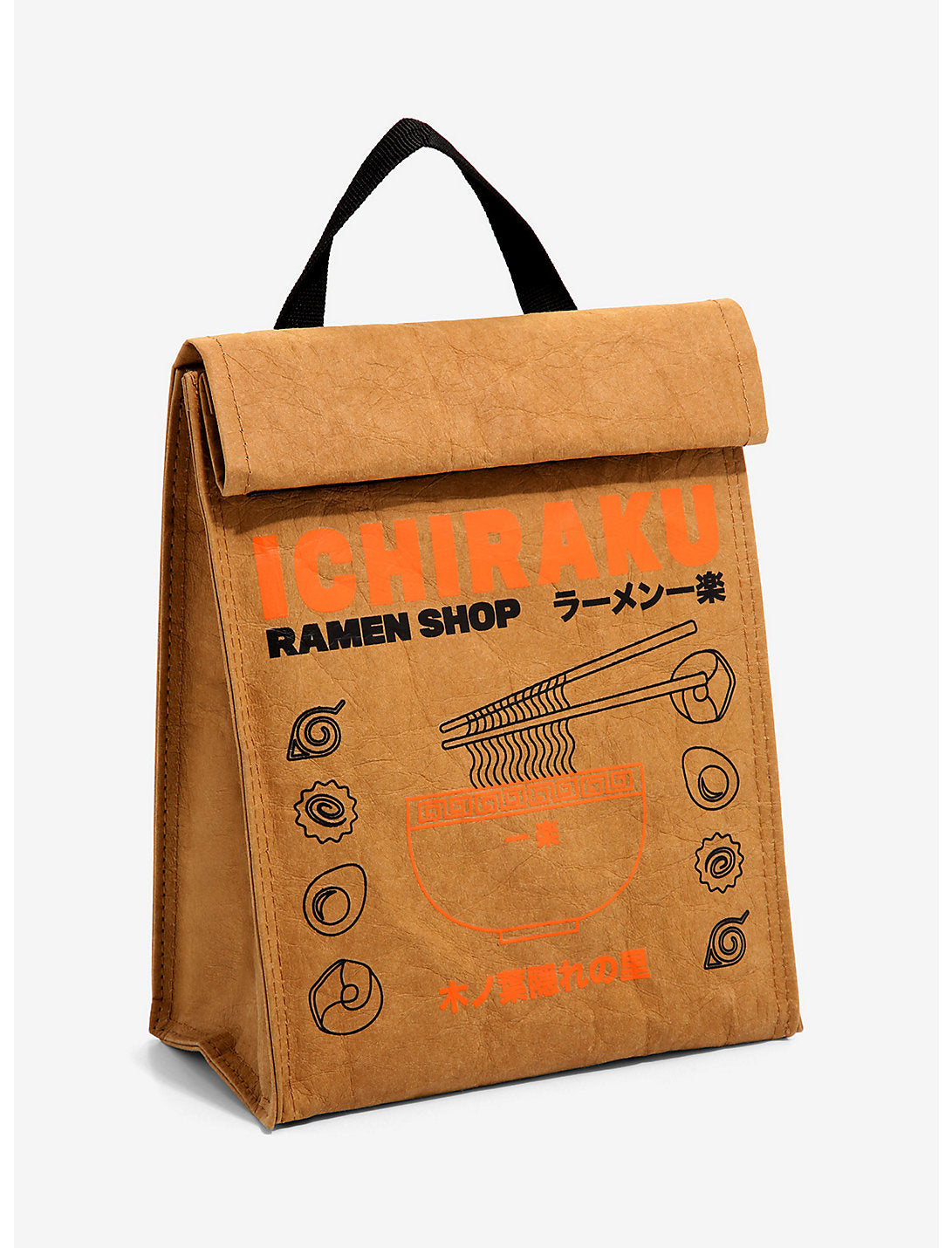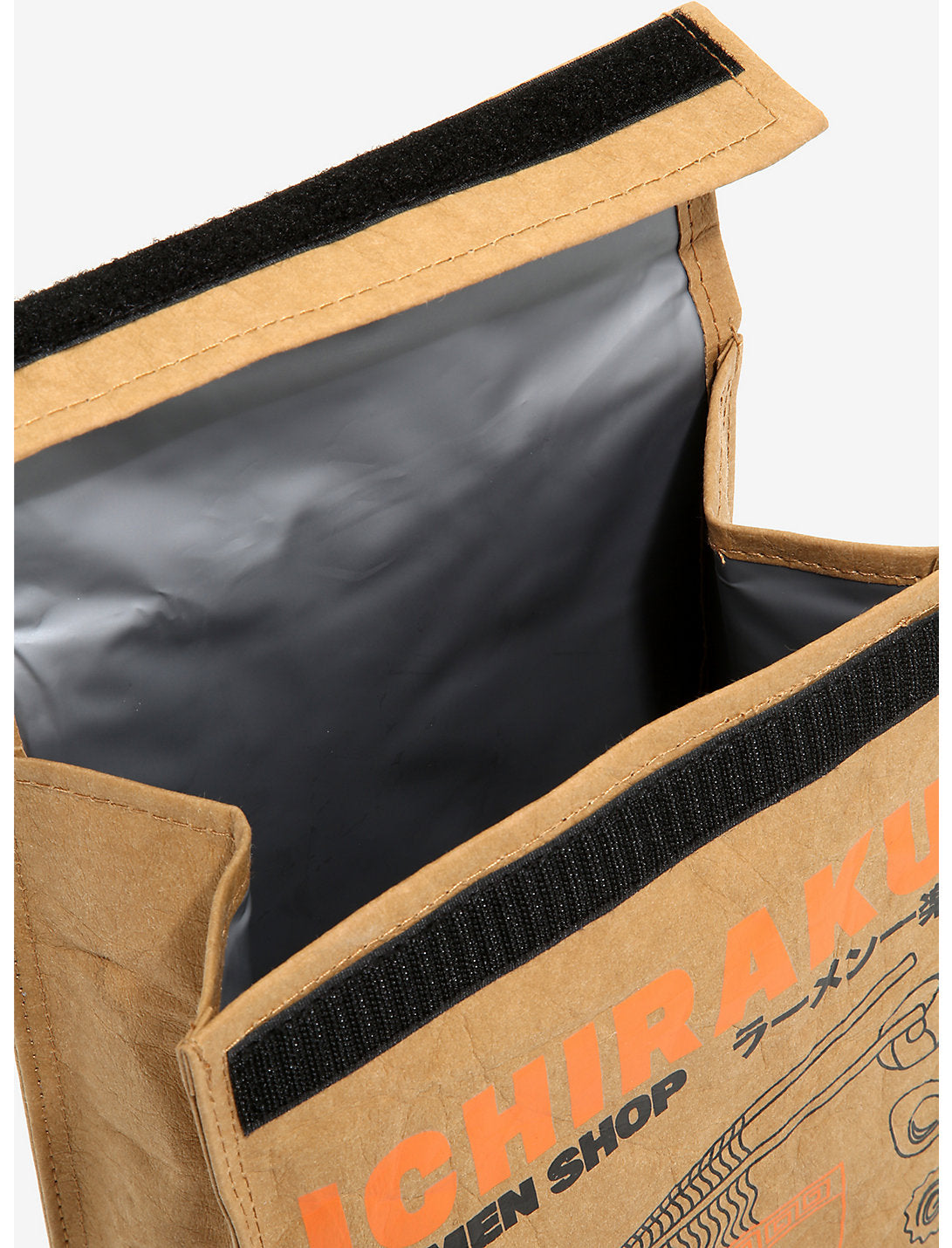 ¡Mantén tu ramen caliente para la hora del almuerzo! Esta bolsa de almuerzo con aislamiento de Naruto Shippuden presenta un diseño de texto "Ichiraku Ramen Shop" con tazón de ramen e ingredientes. Tiene asa de transporte y cierre de cinta de velcro.
