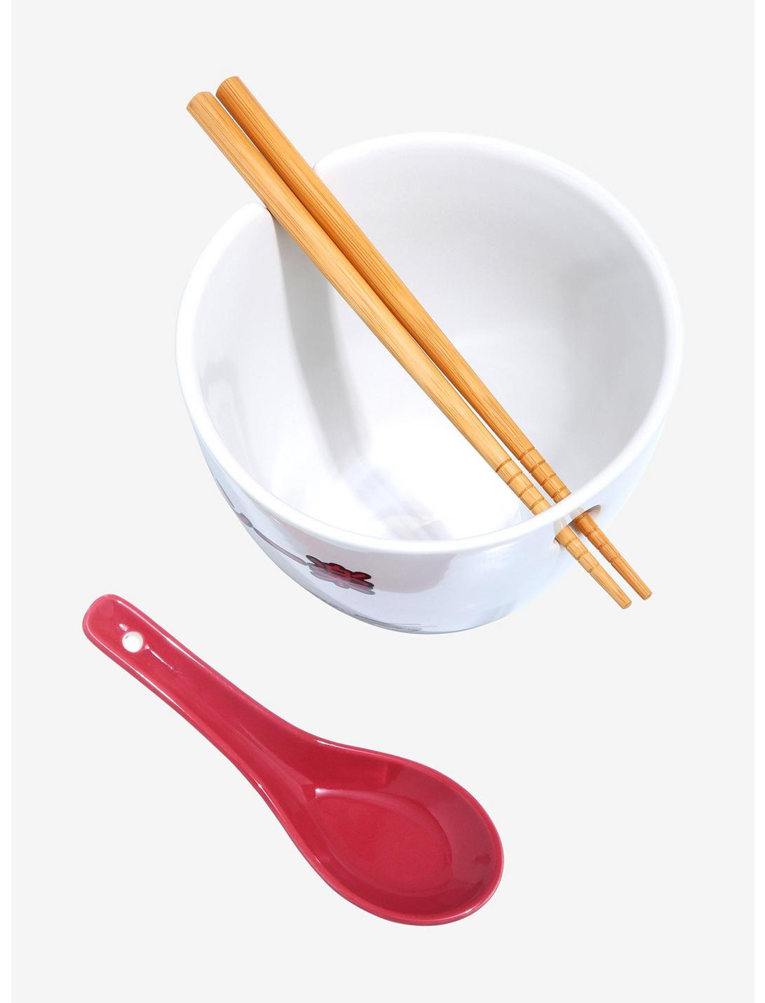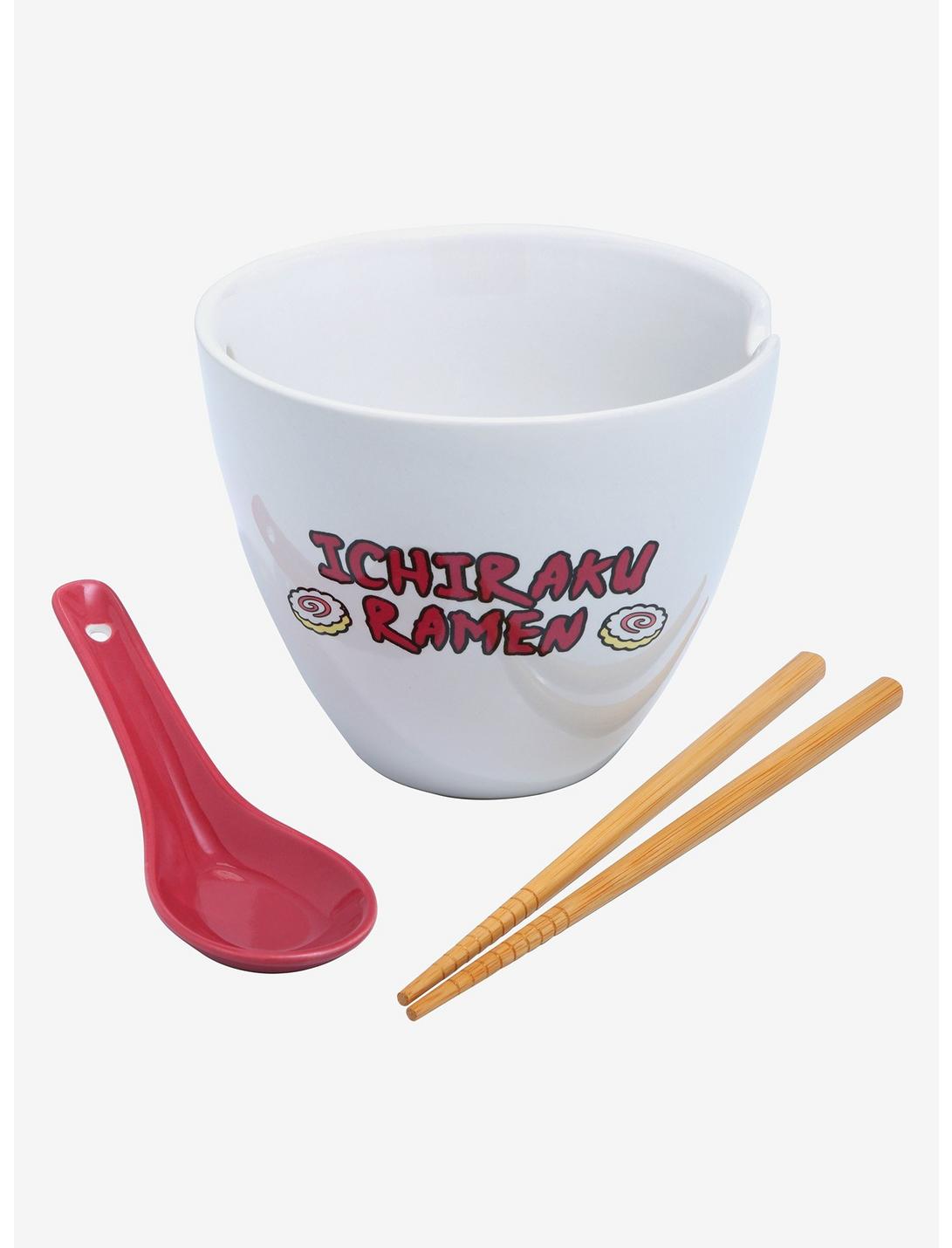 ¡Disfruta de un festín feroz con tu héroe favorito amante del ramen y este juego de tazones de ramen inspirado en la exitosa serie de anime, Naruto Shippuden! Naruto aparece como el adorable gráfico chibi en el frente, mientras que en la parte posterior se colocan las letras "Ichiraku Ramen" entre las deliciosas piezas de naruto. Este juego de 3 piezas incluye una cuchara y palillos, ¡todo lo que necesitas para una cena deliciosa! También cuenta con muesca y sujeción en el recipiente para descansar los palillos.