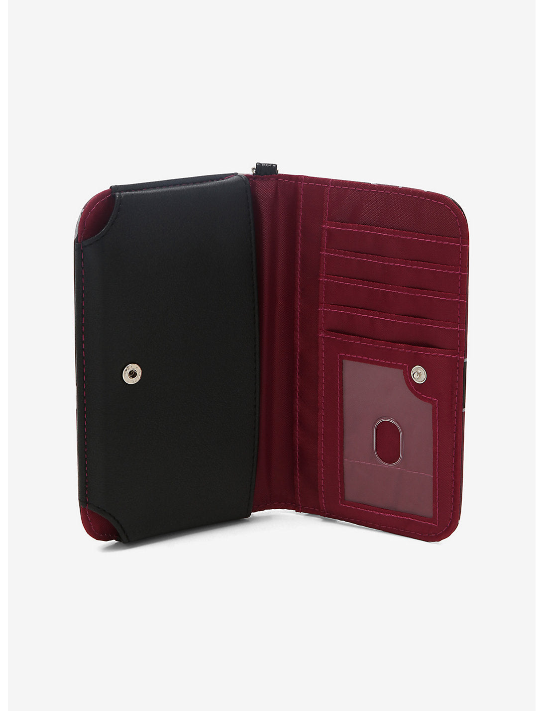 Se sabe que los shinobi viajan livianos. ¡Mantenga todos sus elementos esenciales en un solo lugar con esta billetera tecnológica de Naruto Shippuden! Esta pulsera de piel sintética tiene una ranura para su teléfono, dos carteras, 4 ranuras para tarjetas y una pantalla de identificación transparente, además de un bolsillo con cremallera en el exterior. Presenta una impresión de perfil de Itachi en la parte delantera, con nubes de Akatsuki ombré por todas partes.