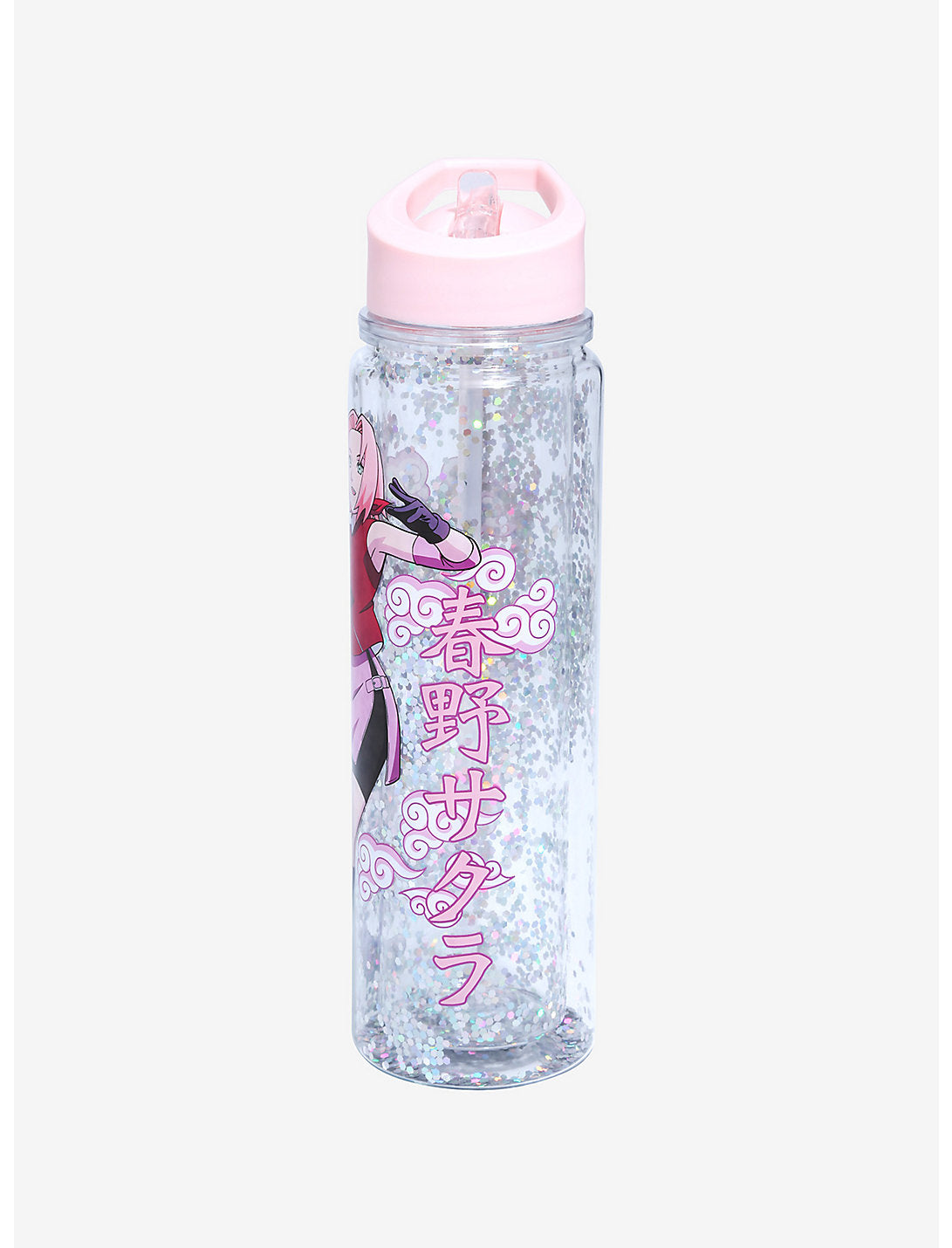 ¡Representa a tu miembro favorito del Equipo 7 y mantente hidratado al estilo shinobi con esta botella de agua con purpurina! Sakura, la ninja de cabello rosado del anime favorito de los fanáticos, Naruto Shippuden, está lista para entrar en acción junto a las letras kanji japonesas que dicen "Haruno Sakura".