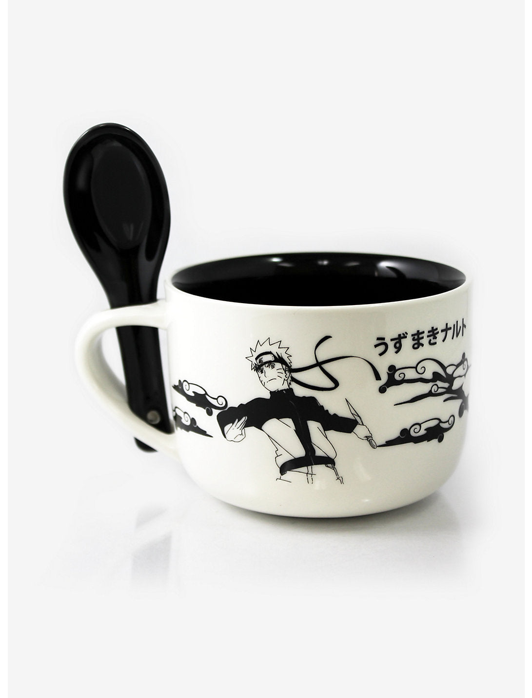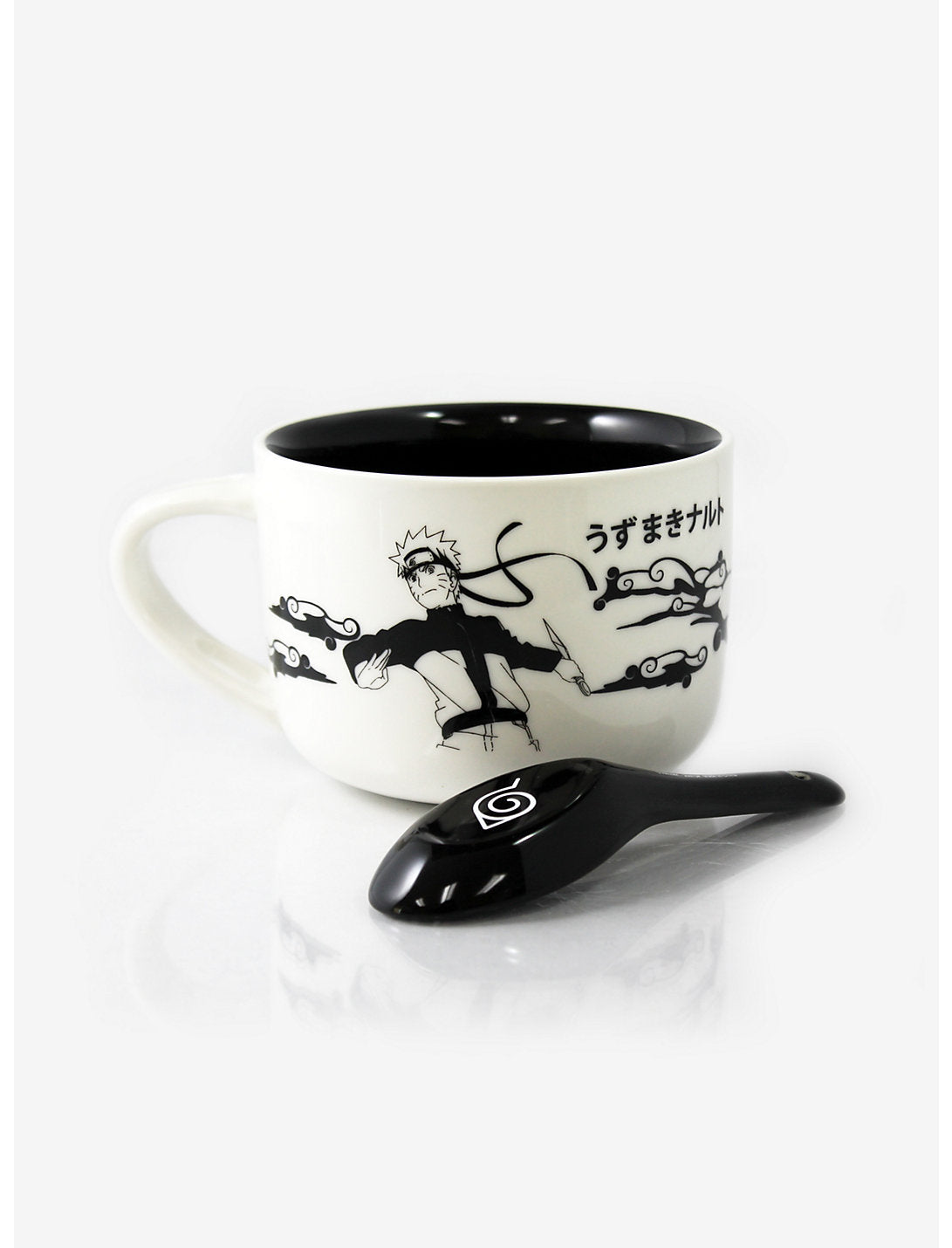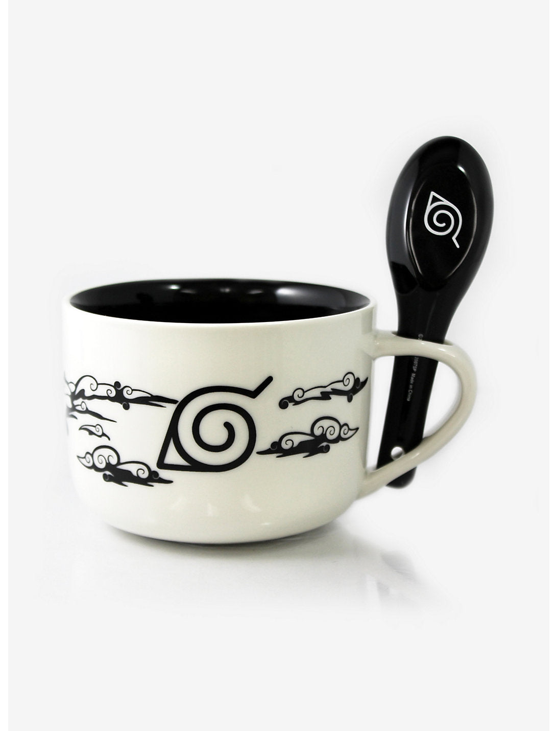 Tiempo de ramen, todo el tiempo. Esta taza de sopa blanca de Naruto Shippuden presenta una imagen de Naruto, las nubes de Akatsuki y el símbolo de Hidden Leaf Village. Incluye cuchara a juego.