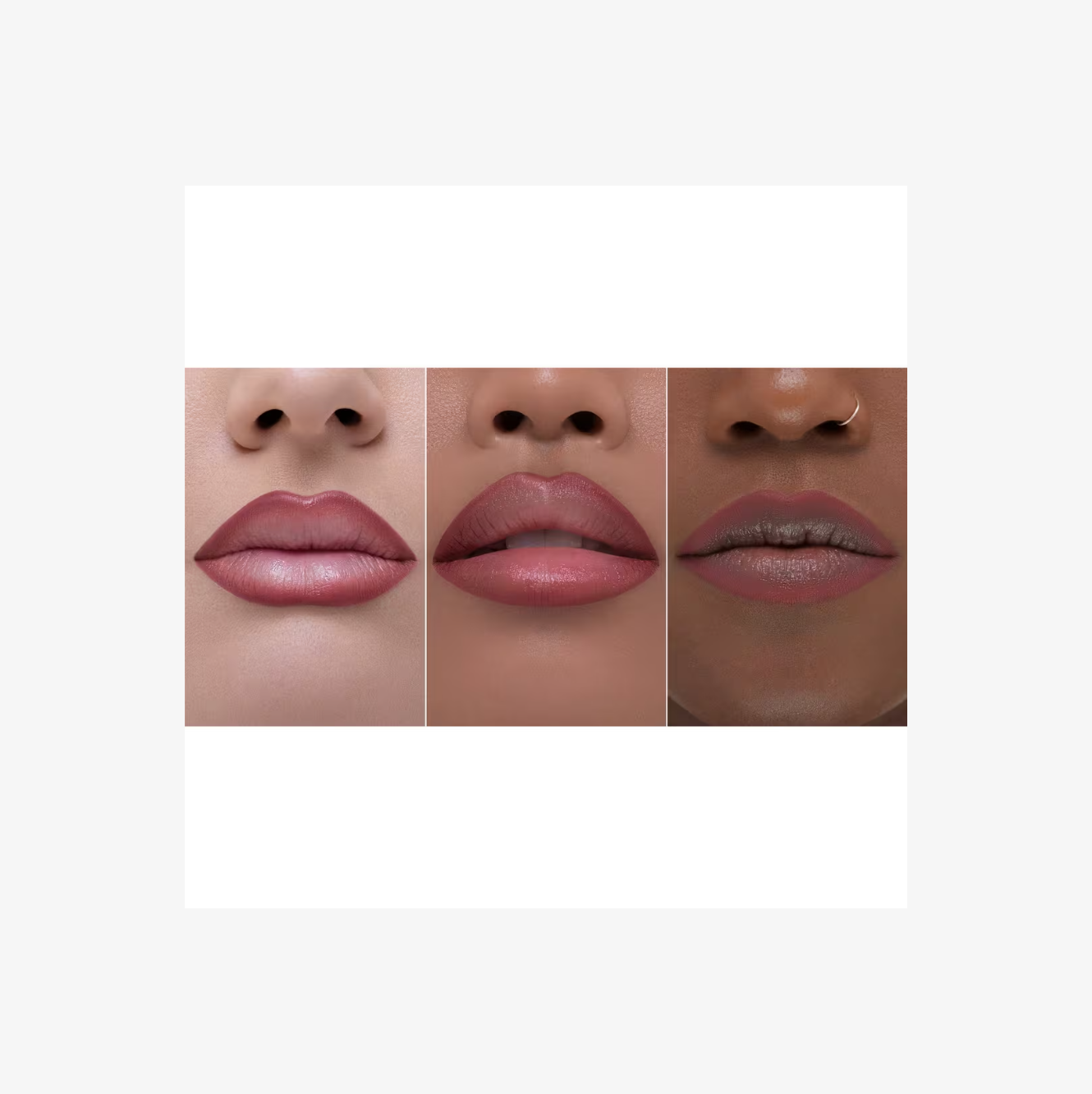 Lápiz labial mate cremoso y altamente pigmentado que define los labios, ofreciendo un acabado rico, sedoso, duradero y cómodo