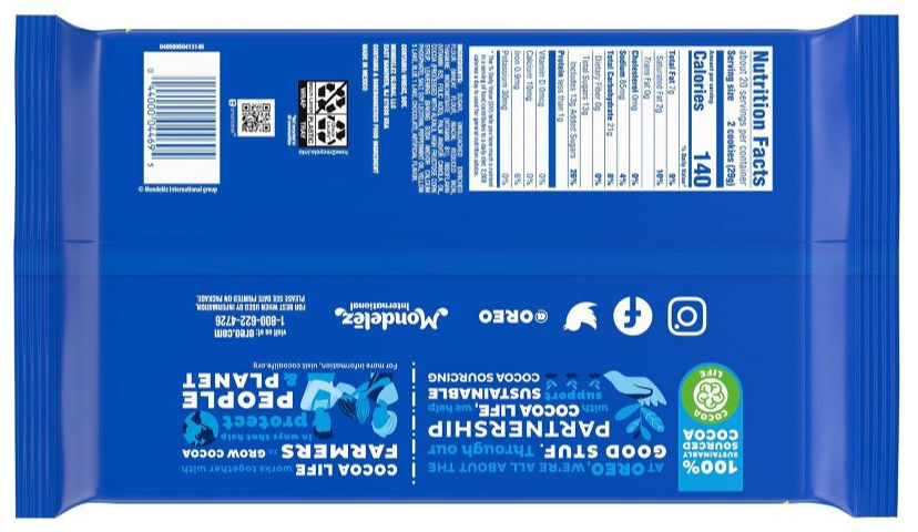 Cocoa Life: 100 % cacao de origen sostenible; OREO se asocia con Cocoa Life para ayudar a respaldar el abastecimiento sostenible de cacao, consulte el sitio web de Cocoa Life para obtener más detalles