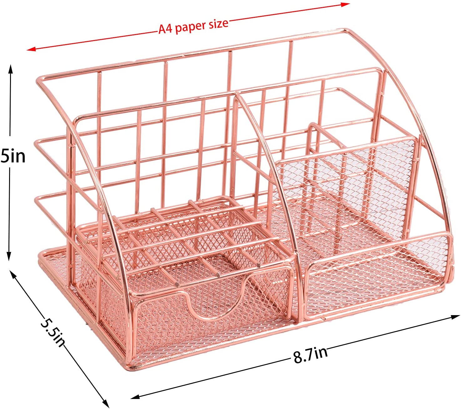 - Práctico y práctico: el organizador de escritorio está diseñado con una superficie recubierta de polvo de larga duración y no se decolora. Diseño de malla más moderno y duradero, por lo que se puede utilizar en diferentes lugares y almacenar varios artículos de papelería en cualquier momento. El organizador de escritorio de malla también es un buen regalo.