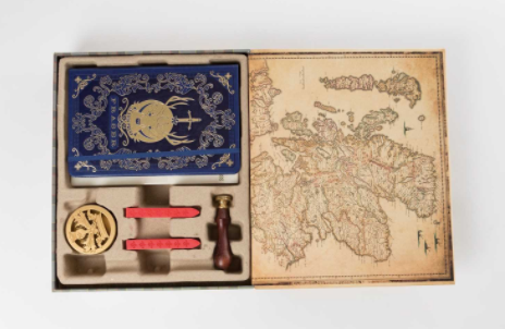 - Papel de escribir, sobres y un pisapapeles ,todos los cuales cuentan con el logotipo del programa de televisión Outlander.