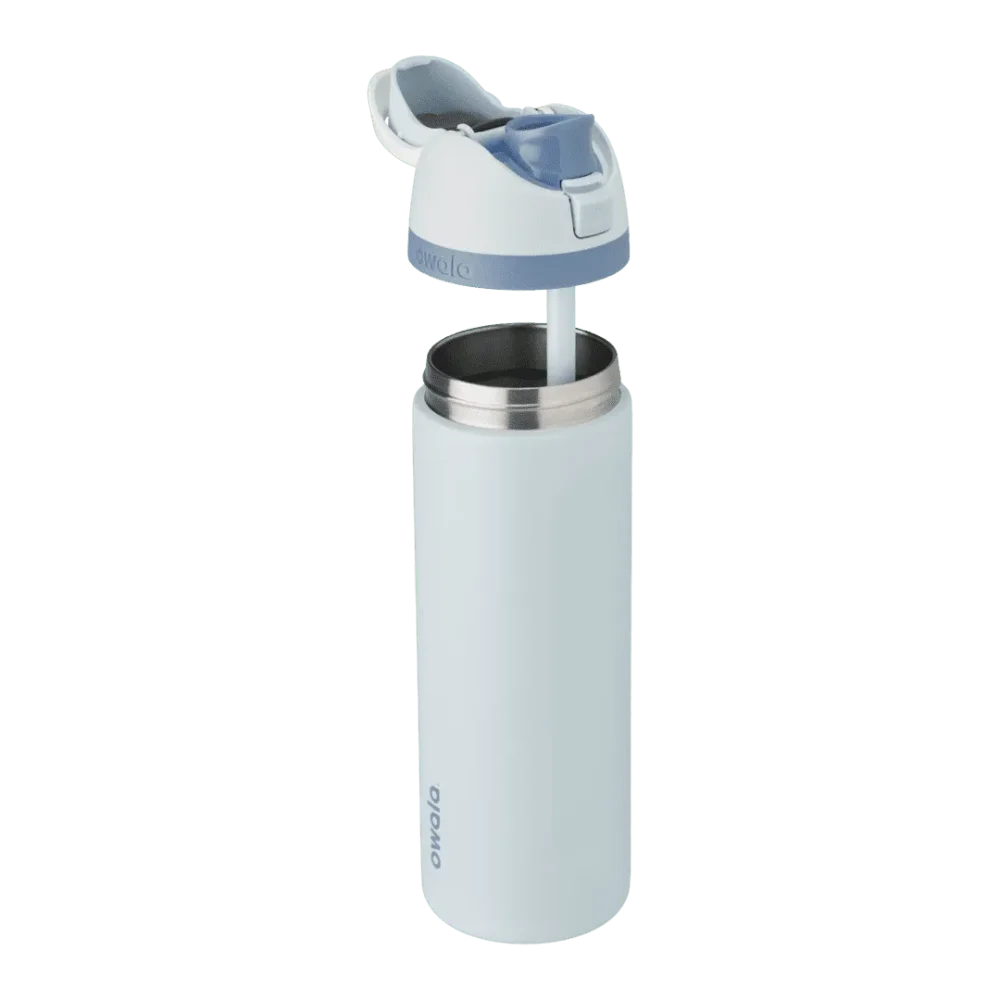 - Boquilla patentada FreeSip diseñada para beber en posición vertical a través de la pajita integrada o inclinarse hacia atrás para tragar desde la abertura de la boquilla