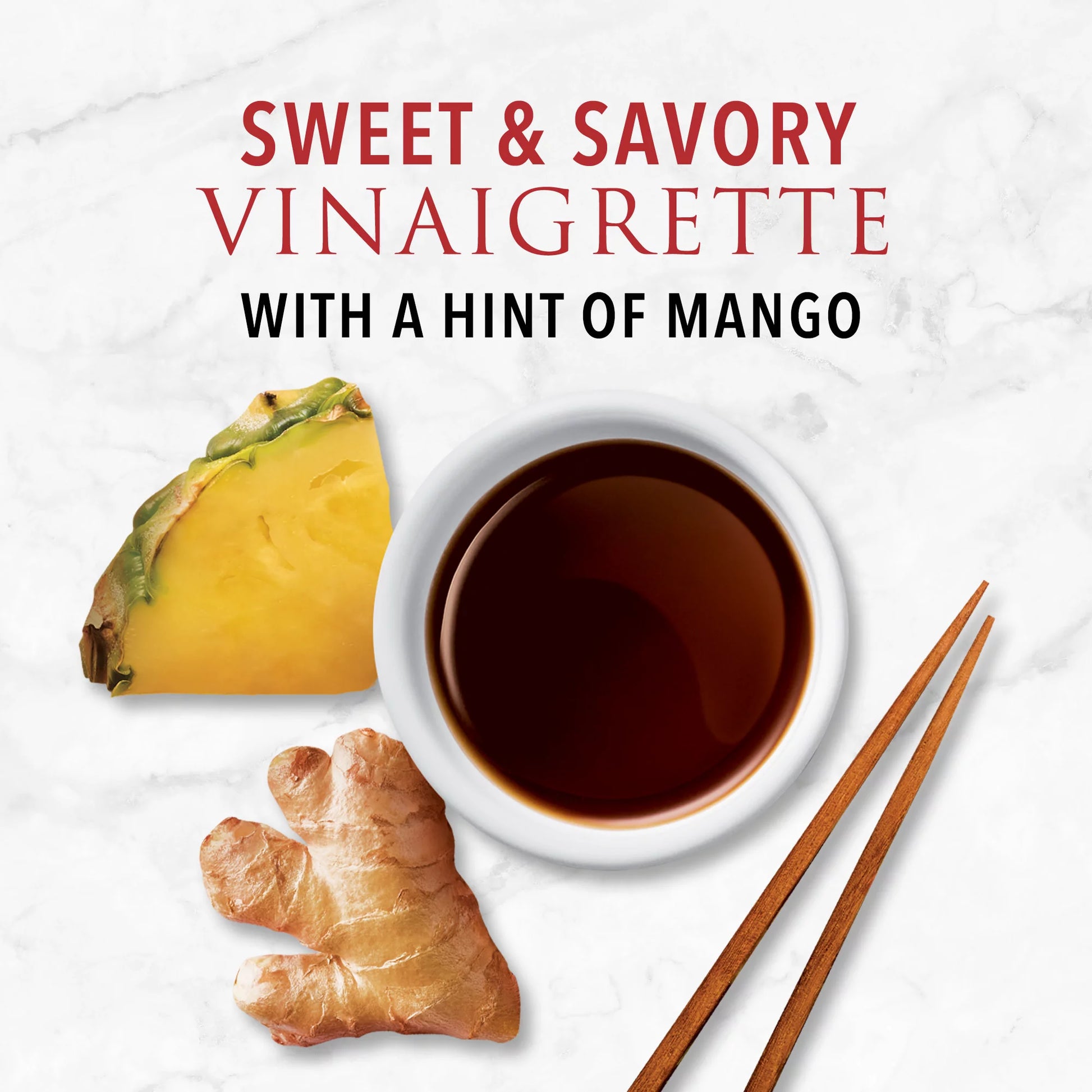 Disfruta de una vinagreta dulce y salada con un toque de mango y aceite de sésamo