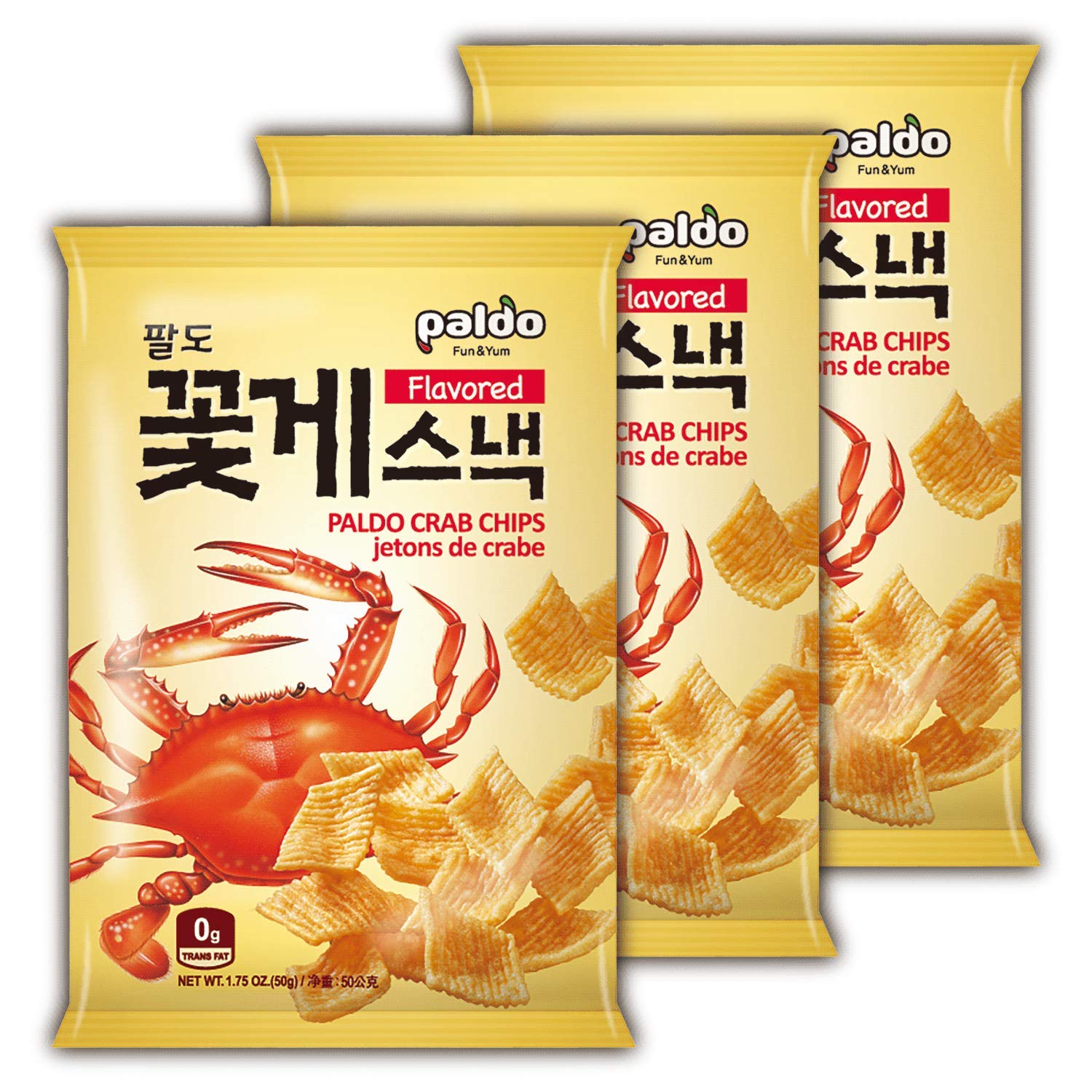 FUN & YUM CRAB SNACK CRACKERS: ¡Son los bocadillos coreanos muy queridos que son divertidos para toda la familia! Es muy sabroso con sabor a cangrejo. Todos los chips de cangrejo nuevo con condimento de cangrejo gourmet. ¡Disfruta de una textura crujiente y un rico refrigerio de cangrejo! 1.76 oz x 3 paquetes.