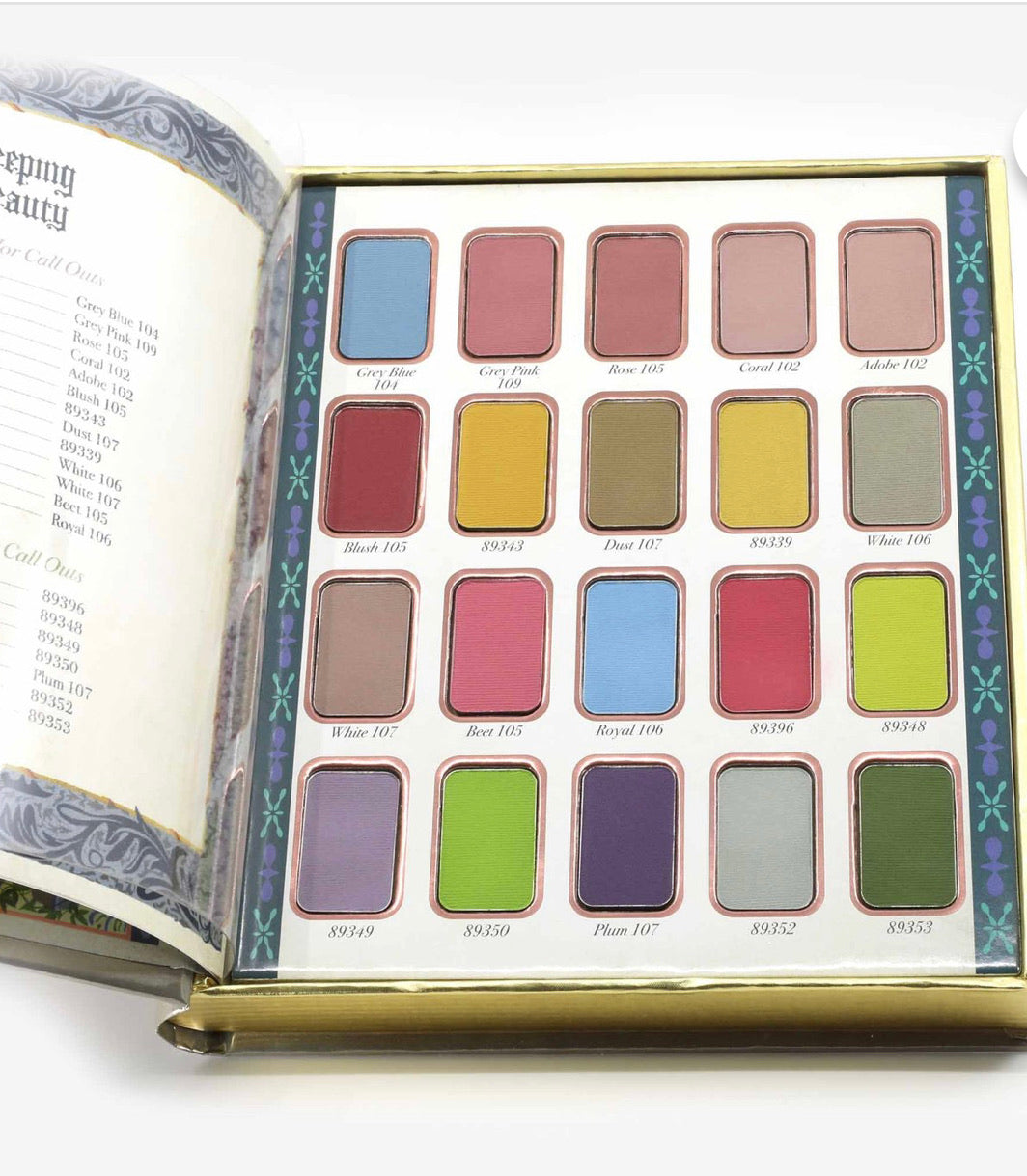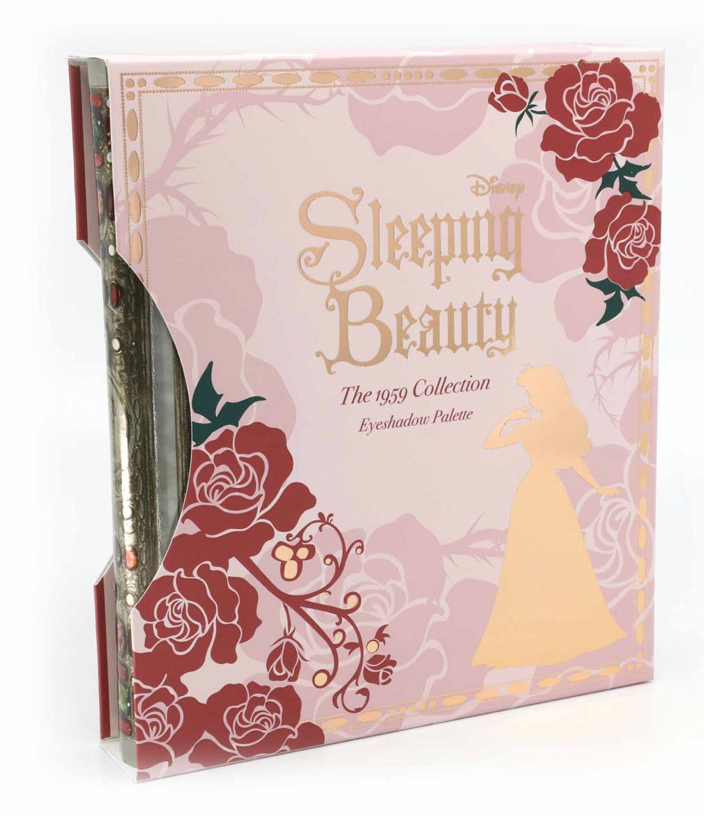 - Paleta de sombras de ojos Sleeping Beauty de 1959 presenta 20 sombras de ojos mate que coinciden con los colores originales del departamento de tinta y pintura de Disney utilizados en la película clásica, La bella durmiente de Disney. La portada de la paleta coincide con el famoso libro al comienzo de la película.