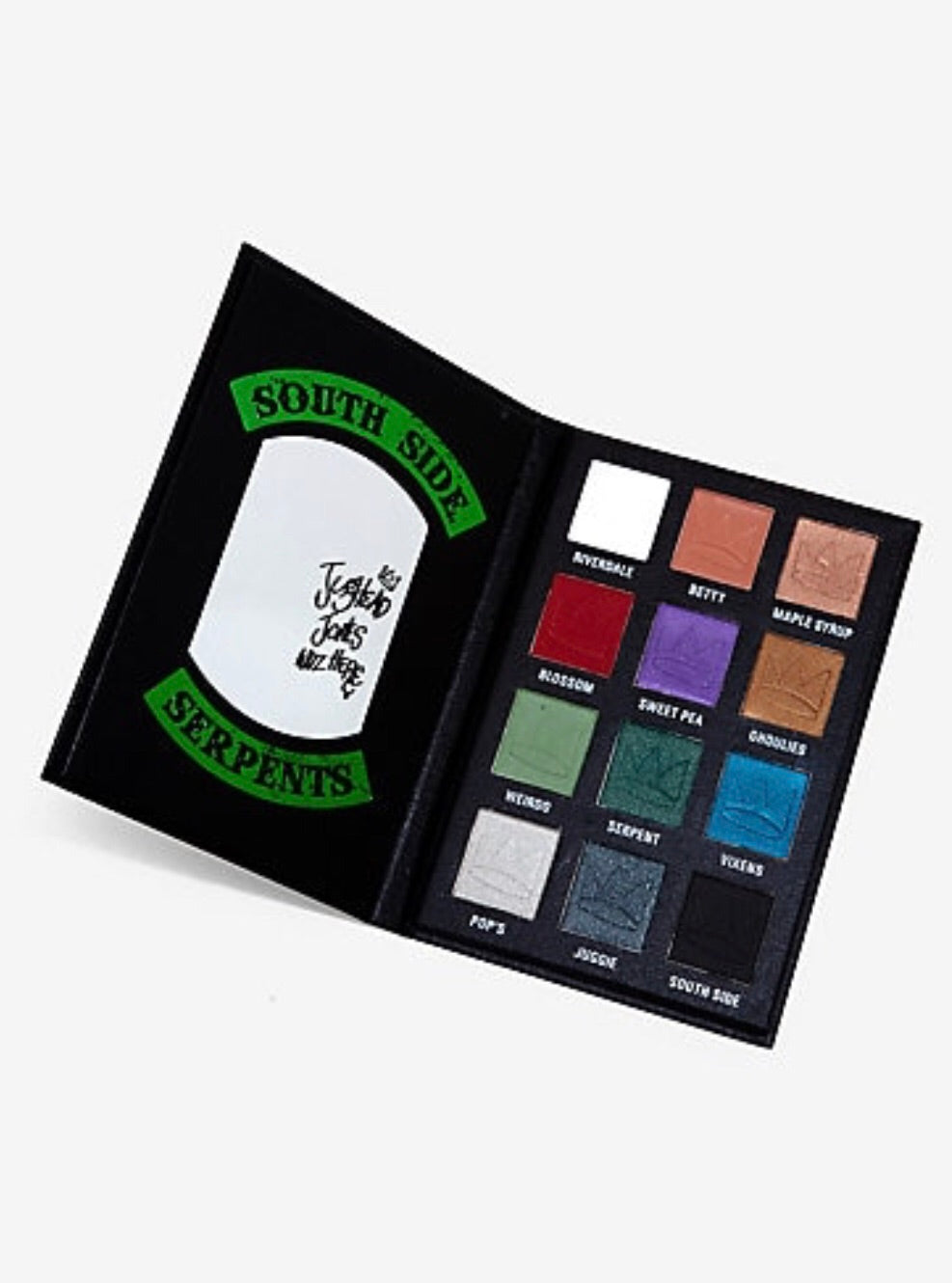 Esta paleta de sombras de ojos de Riverdalepresenta un parche de Southside Serpents enel frente y se abre como un libro.