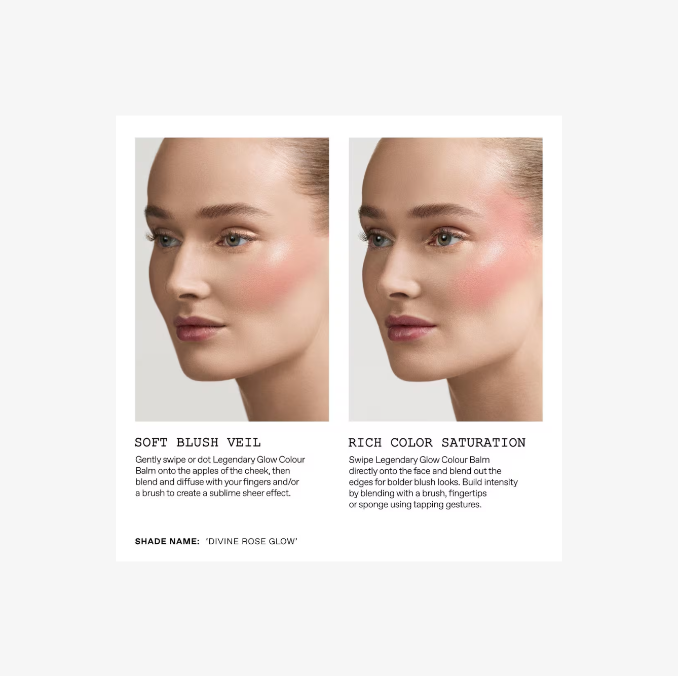 Mayor intensidad: desliza directamente sobre la piel y difumina bordes para un rubor más marcado. Repite para intensificar.