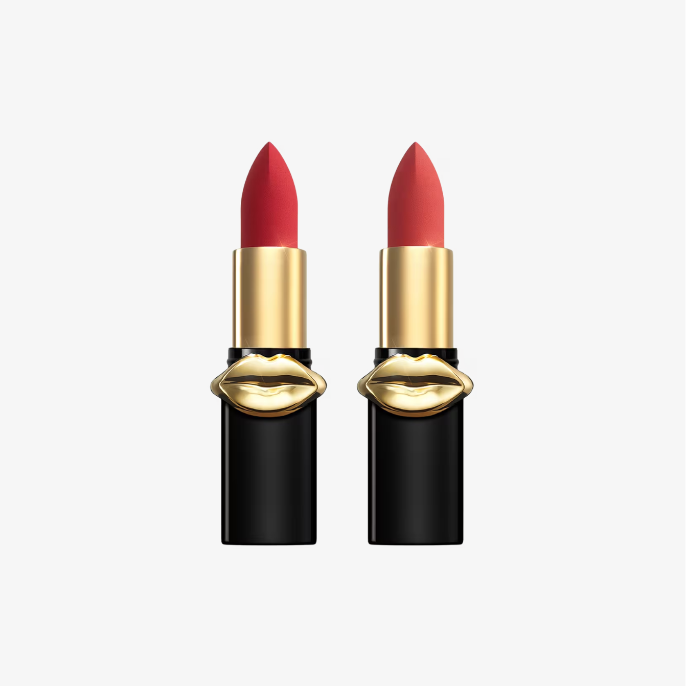 Mate en versión mini. Dos tonos vibrantes de acabado mate y cómodo de PAT McGRATH LABS, en un tamaño perfecto para llevar glamour a donde vayas.