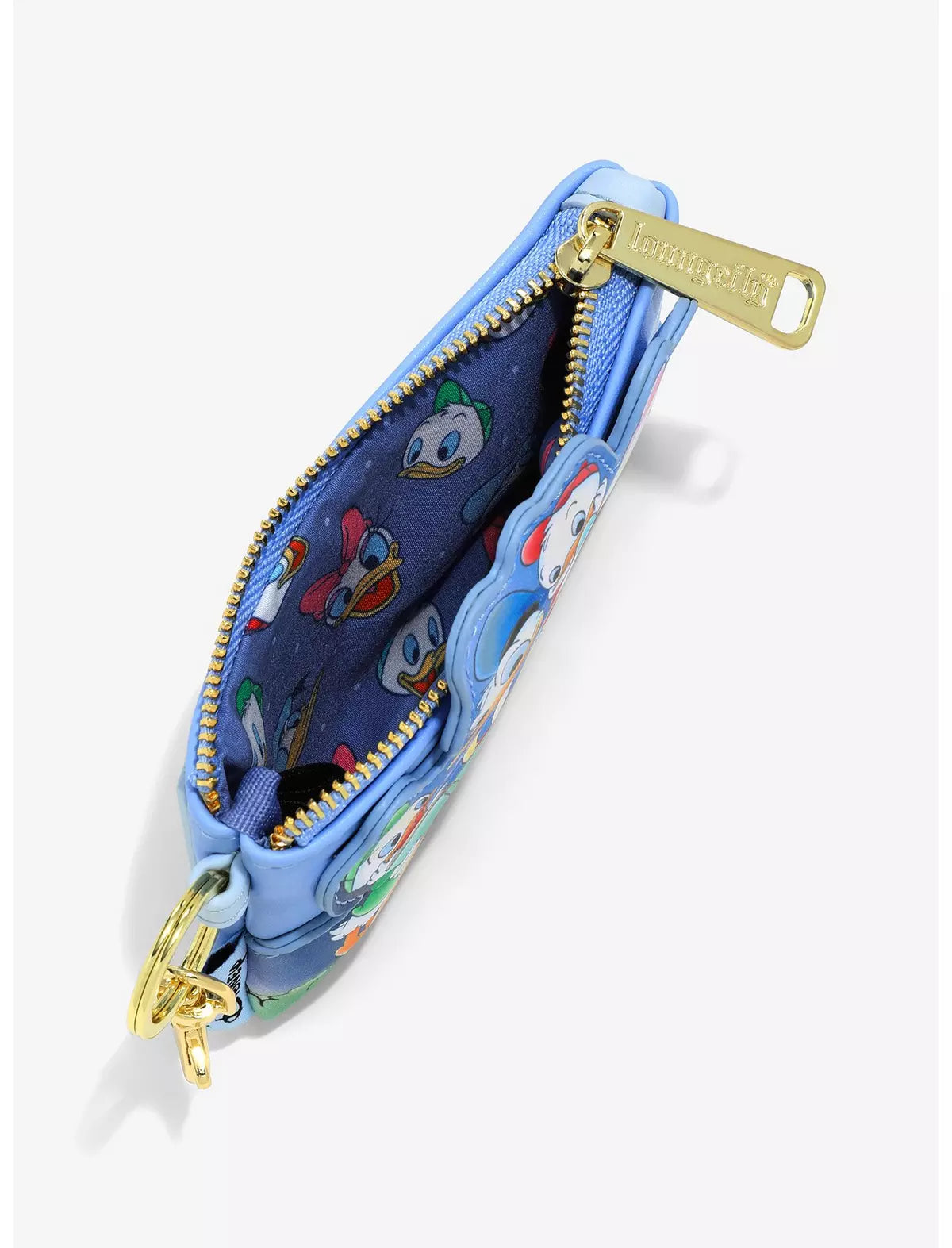 ¡Ni siquiera Donald puede ponerse de mal humor con este monedero! Este accesorio Loungefly presenta un aplique de Donald, Daisy, Huey, Dewey y Louie leyendo alrededor de la fogata. Con una funda de identificación transparente, una bolsa con cremallera y un clip de langosta lateral, es seguro y conveniente, ¡y agrega un toque de estilo Disney!