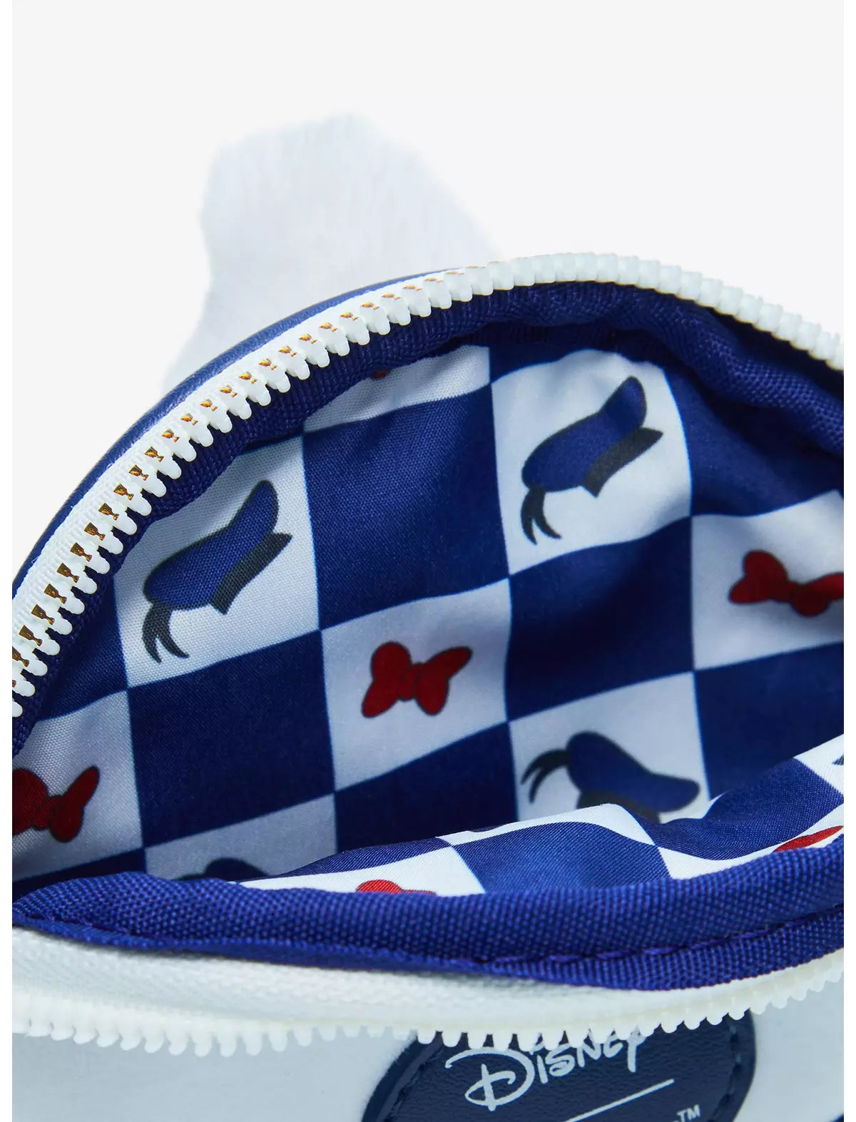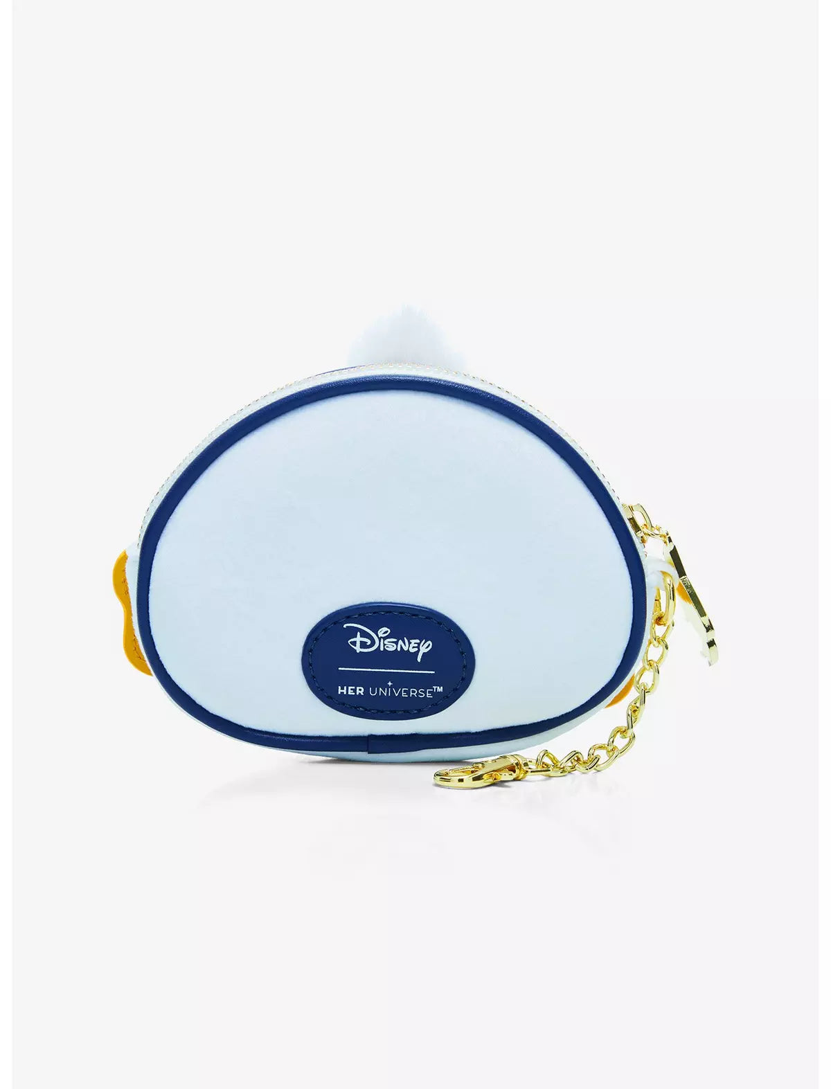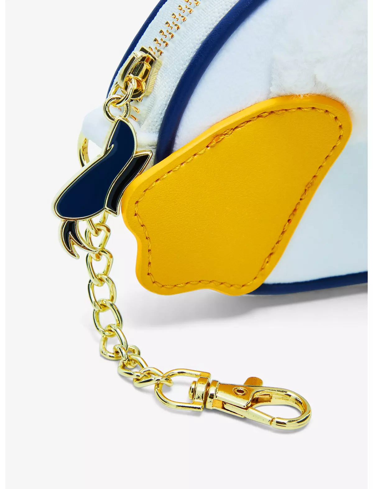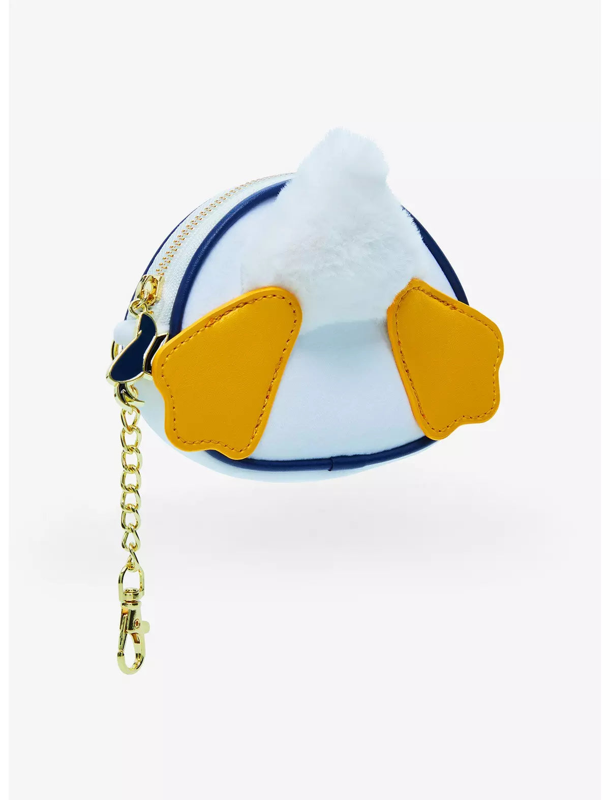 ¡El Pato Donald está aquí para sacudir la pluma de su cola! ¡Abre este monedero para guardar todas tus tarjetas esenciales! Perfecto para celebrar el 90.º aniversario del pato Donald, este monedero presenta una cola de felpa peluda y detalles de patas de pato aplicadas. Viene con una cadena en tono dorado con gatillo y dije de sombrero de marinero esmaltado.