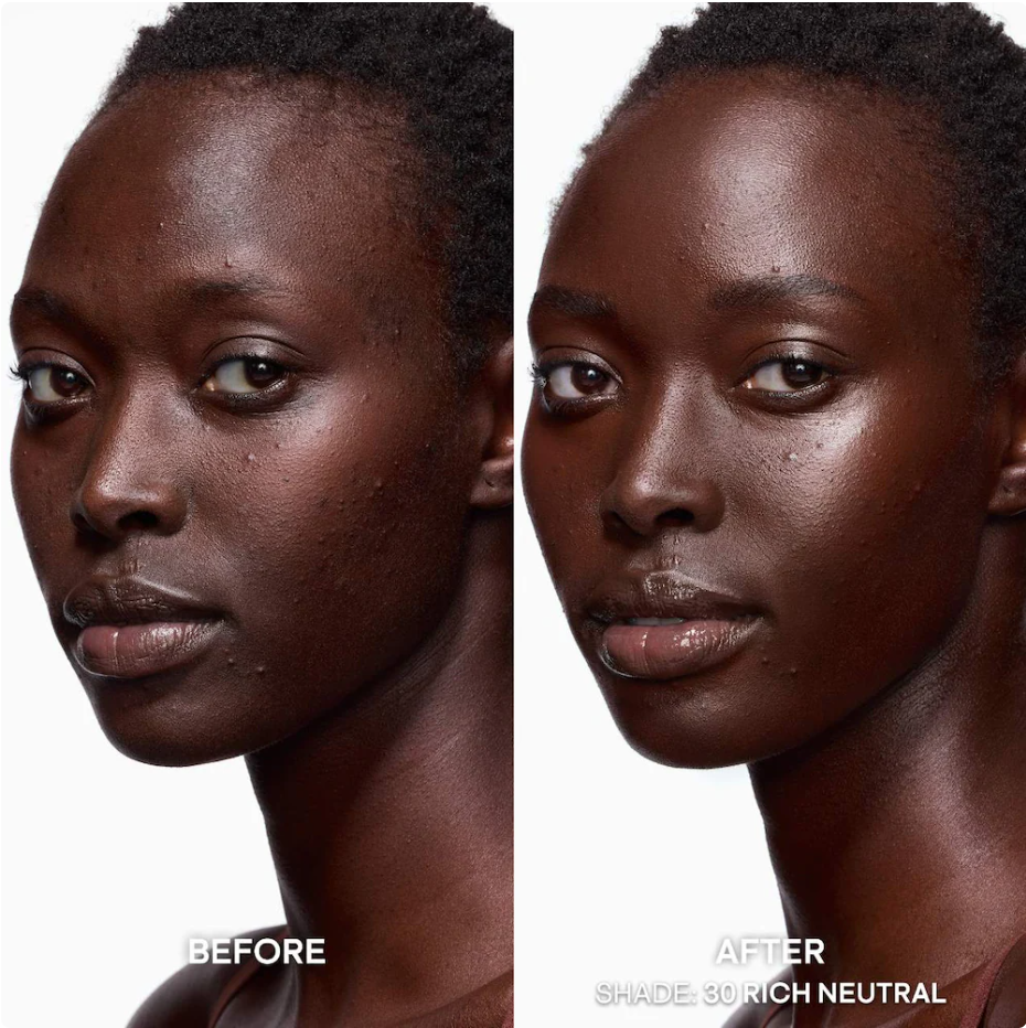 Una base luminosa con ingredientes de inspiración sérum y cobertura ligera a media, modulable, que aporta hidratación y se funde de manera uniforme con la piel.