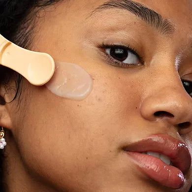 Tras limpiar y aplicar tu sérum o tratamiento, toma una cantidad equivalente a una moneda grande con la espátula incluida en la tapa y masajea en rostro, cuello y escote.