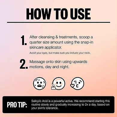 Su fórmula combina ácido salicílico, niacinamida, complejo de ceramidas y un complejo de hibisco protector de la hidratación para tratar y prevenir imperfecciones mientras fortalece la barrera de la piel. El resultado: una piel hidratada, suave y con un aspecto más limpio y uniforme.