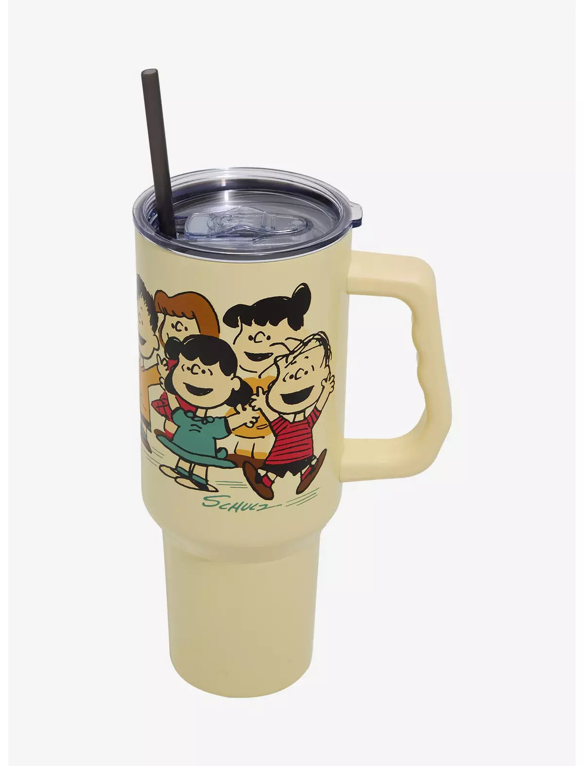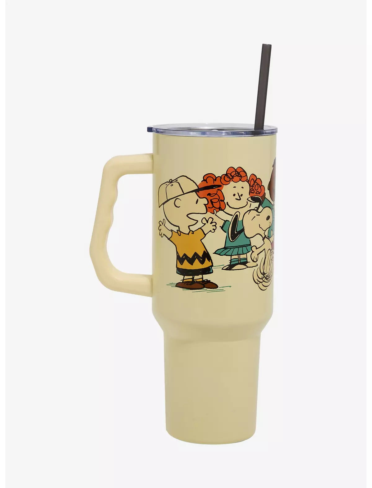 ¡Prepárate para un día de diversión con este vaso de Peanuts! Con un dibujo clásico de la pandilla en el frente, este vaso incluye una tapa con pajita y un asa lateral para transportarlo fácilmente.