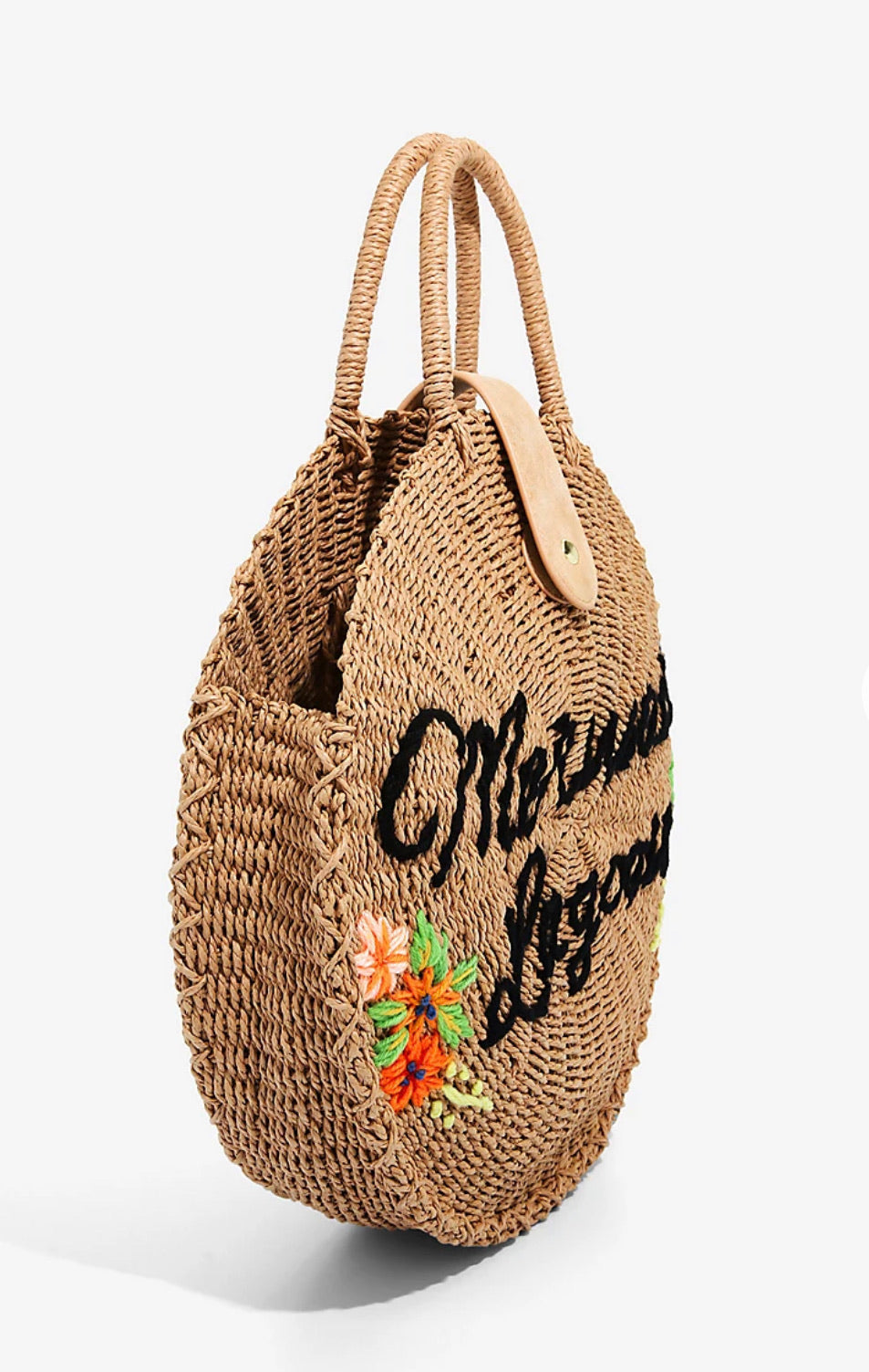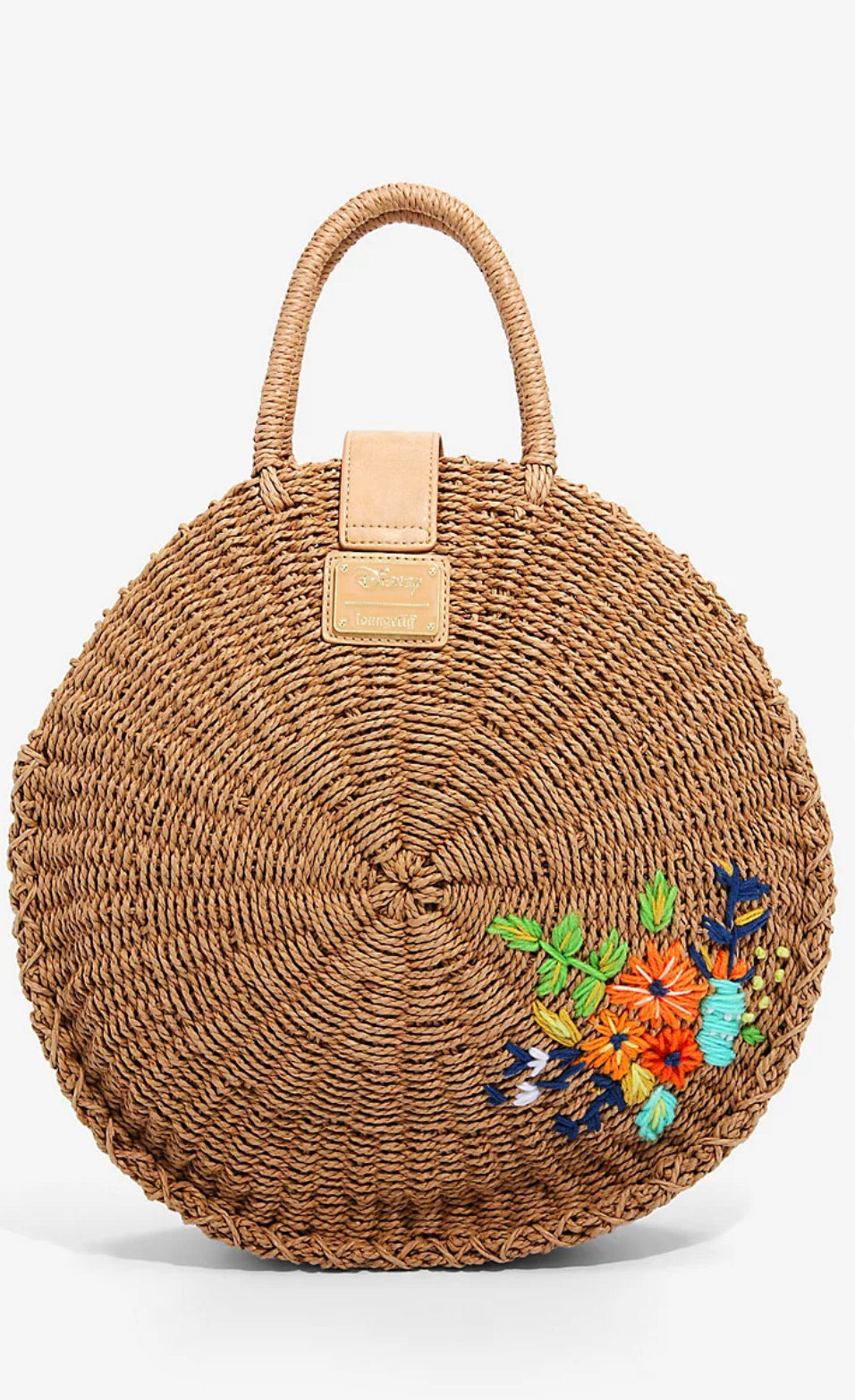 ¡Transpórtate a la Laguna de las Sirenas del País de Nunca Jamás! Ideal para un día de relax en la playa o en la piscina, este bolso de mano circular de paja Loungefly cuenta con una correa con botón magnético y detalles de bordado de hilo inspirados en el encantador lugar de Peter Pan de Disney.