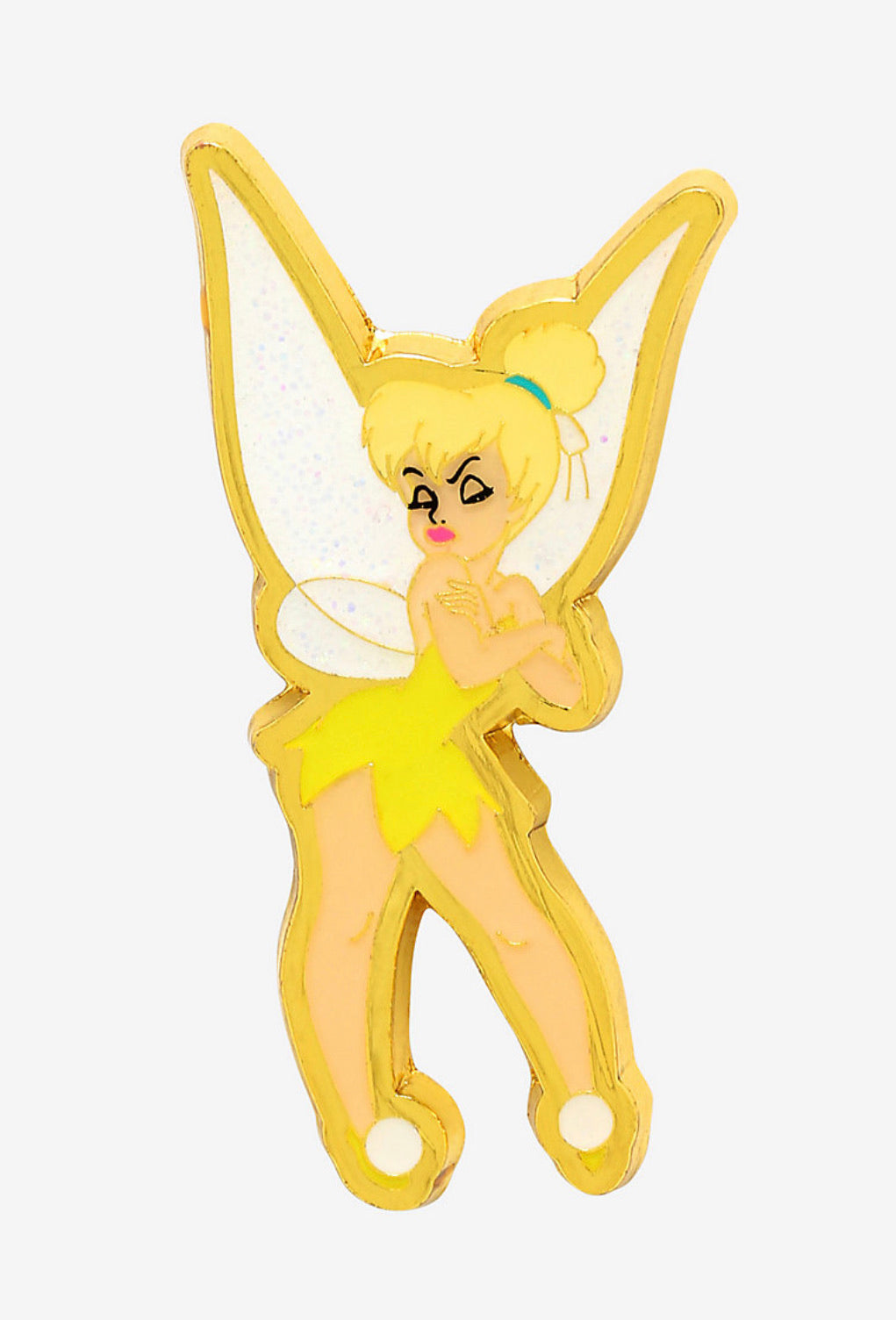 ¡Sirve un poco de descaro como Tinker Bell! Este alfiler de esmalte en tono dorado de Peter Pan presenta una campanilla con alas brillantes.