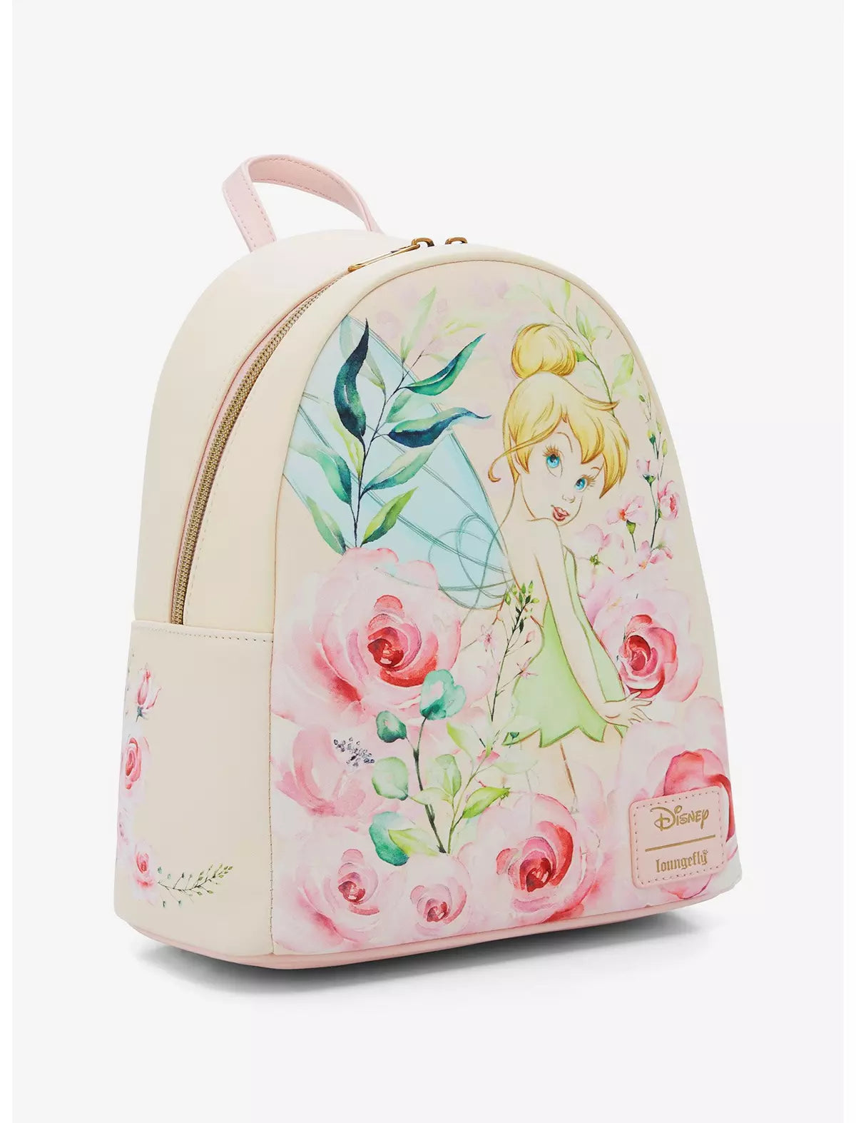 ¡Esta mini mochila es perfecta para la primavera! Muestra a nuestra hada favorita, Tinker Bell, rodeada de rosas súper bonitas. El bolso tiene correas ajustables y un bolsillo interior.