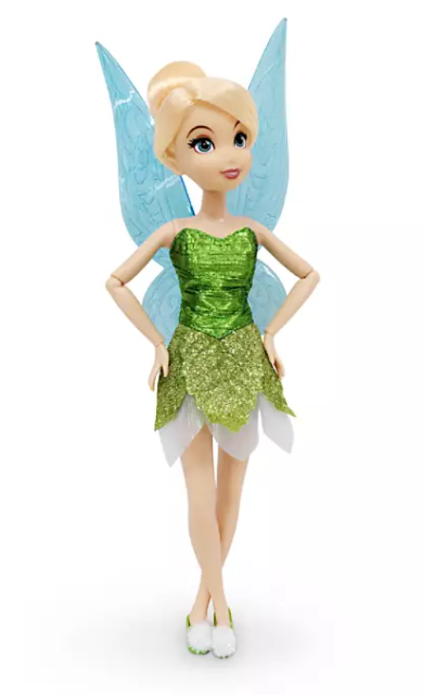- Vuela a un País de Nunca Jamás de pura imaginación con nuestra Muñeca Tinker Bell Classic. El vestido verde frondoso característico de Tink centellea con polvo de duendecillo, mientras que sus delicadas alas de filigrana llevarán corazones felices a la segunda estrella a la derecha y más allá.