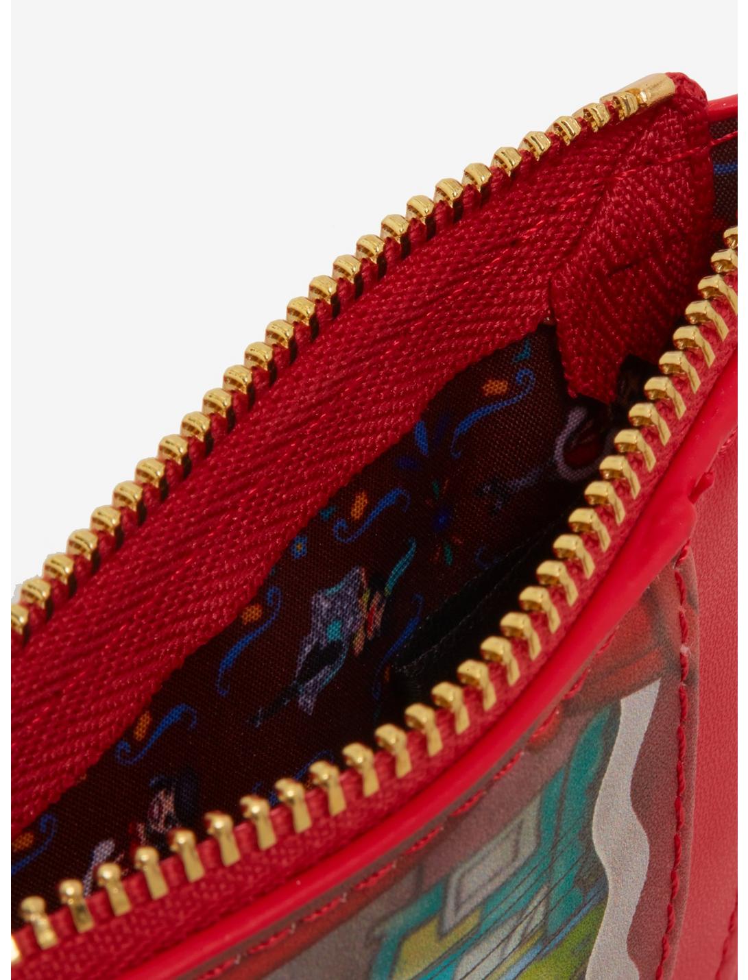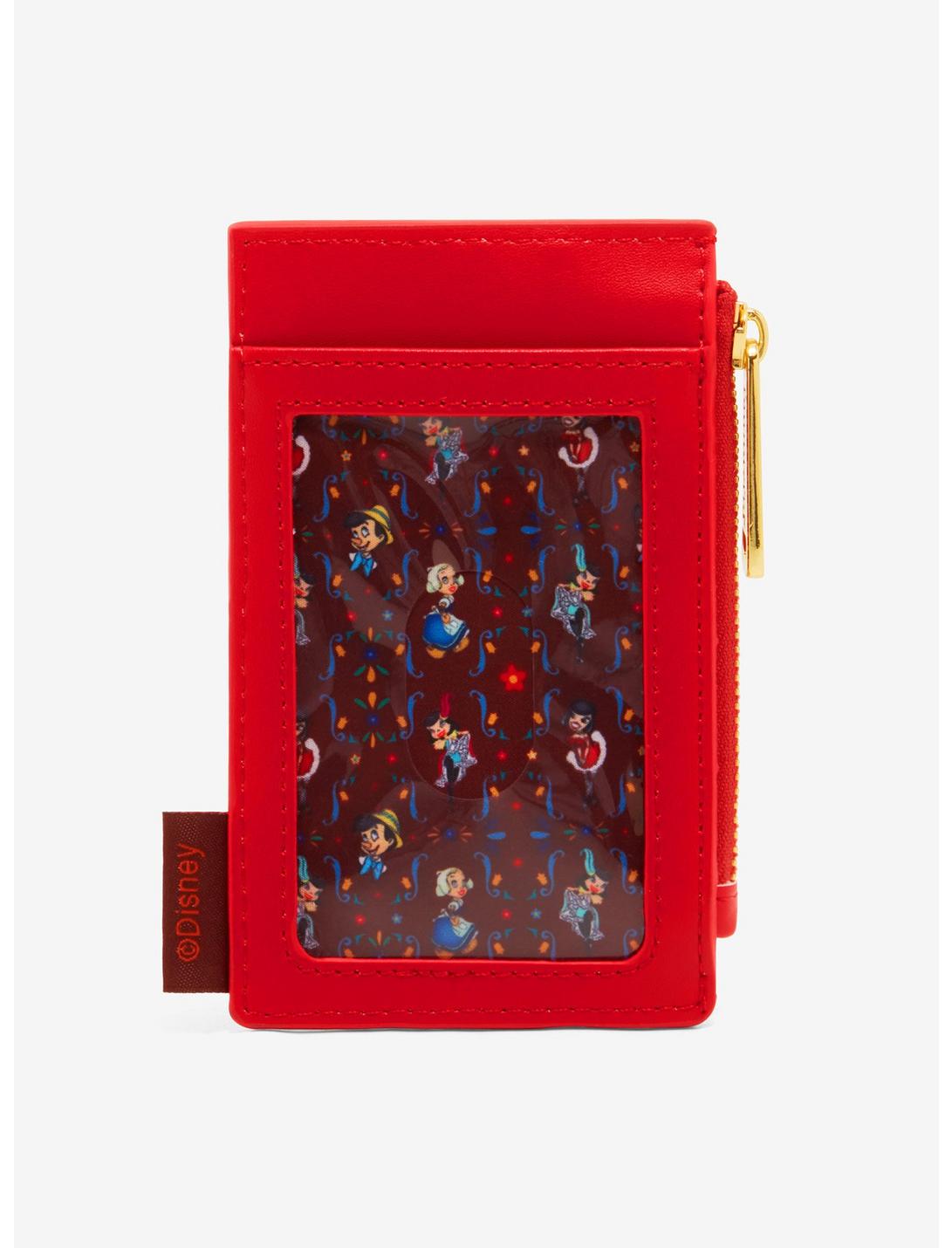 ¡Puede llevar sus artículos esenciales sin ataduras, gracias a este tarjetero Loungefly! Con un diseño de Pinocho y las marionetas de la película de Disney, este tarjetero también cuenta con tres ranuras para tarjetas en el frente, una funda de identificación transparente en la parte posterior y un monedero con cremallera.