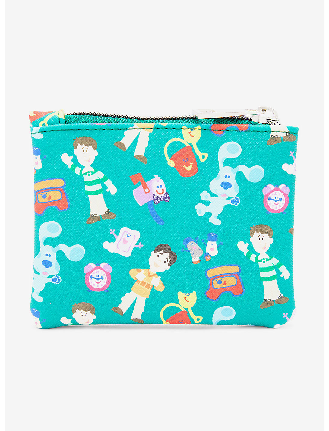 ¡Lleva todo tu cambio de repuesto con este monedero de Blue's Clues! Con un estampado completo de Steve, Joe, Blue, Mailbox, Slippery Soap y otros amigos del programa clásico, puedes hacer lo que quieras (¡con estilo!) con la ayuda de Blue y este elegante accesorio. También cuenta con un cierre de cremallera en tono plateado.