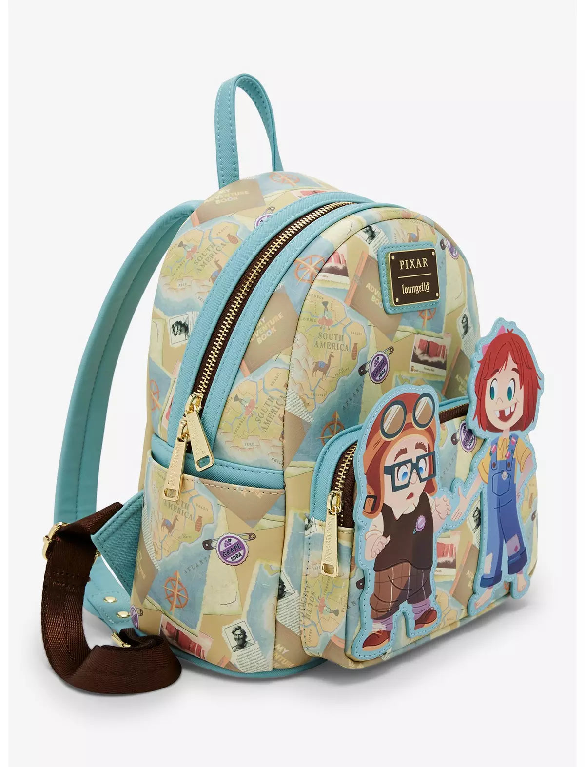 ¡Prepárate para tu próxima aventura con esta mini mochila inspirada en Up! Con apliques de Carl y Ellie jóvenes con detalles en relieve, el cuerpo de este bolso incluye un estampado integral de mapas y pines de refresco de uva. Con "¡La aventura está ahí fuera!" Con letras en la parte posterior, este bolso es perfecto para tu próximo viaje a los Parques Disney.