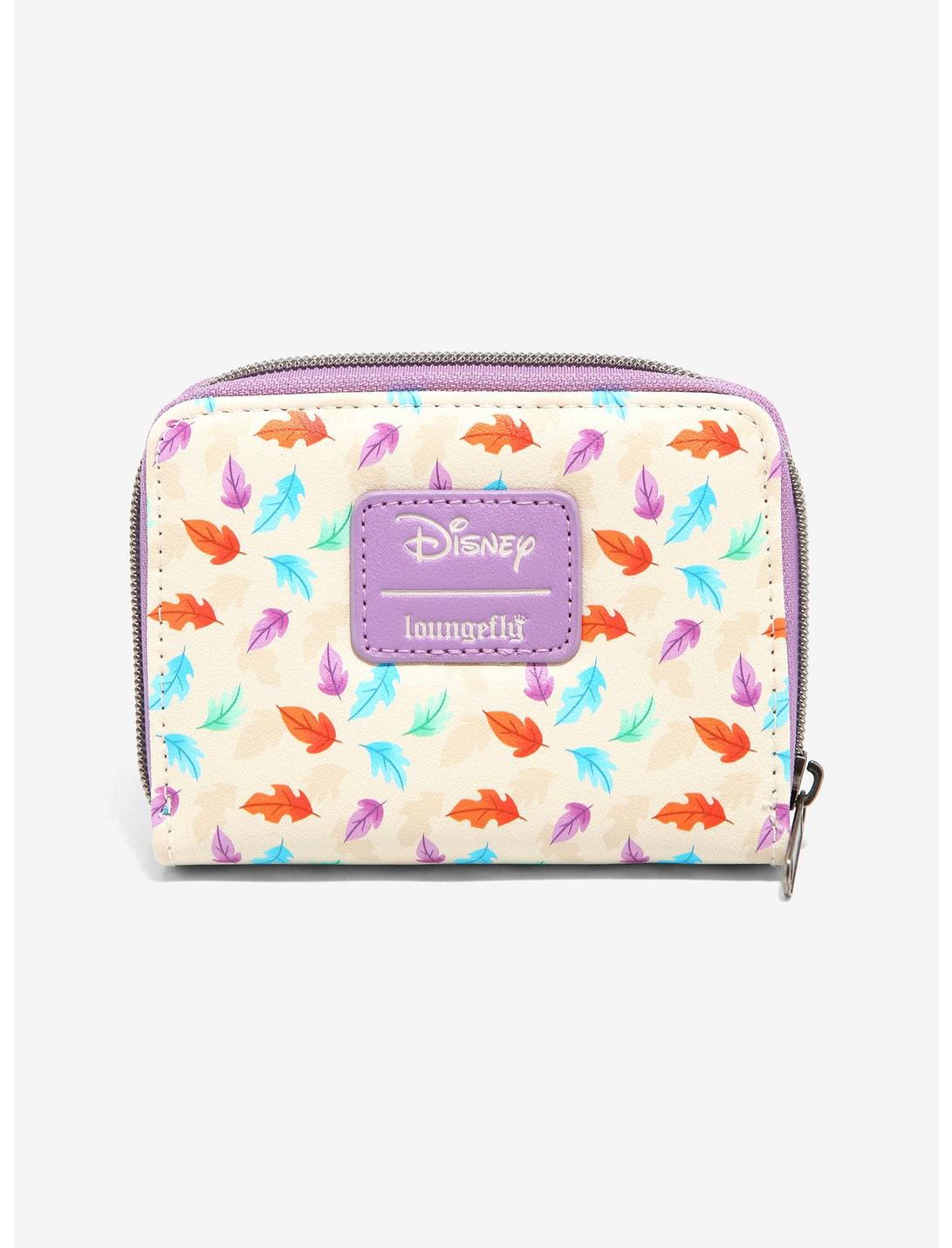 ¡Asegúrate de llevar contigo lo esencial antes de dirigirte a la orilla del río! Esta minicartera con cremallera de Pocahontas está pintada con todos los colores del viento, con hojas vibrantes flotando por la parte delantera y trasera. Un chibi Pocahontas, Meeko y Flit se ilustran en la parte delantera. Viene con 4 ranuras para tarjetas, pantalla de identificación clara y media billetera.