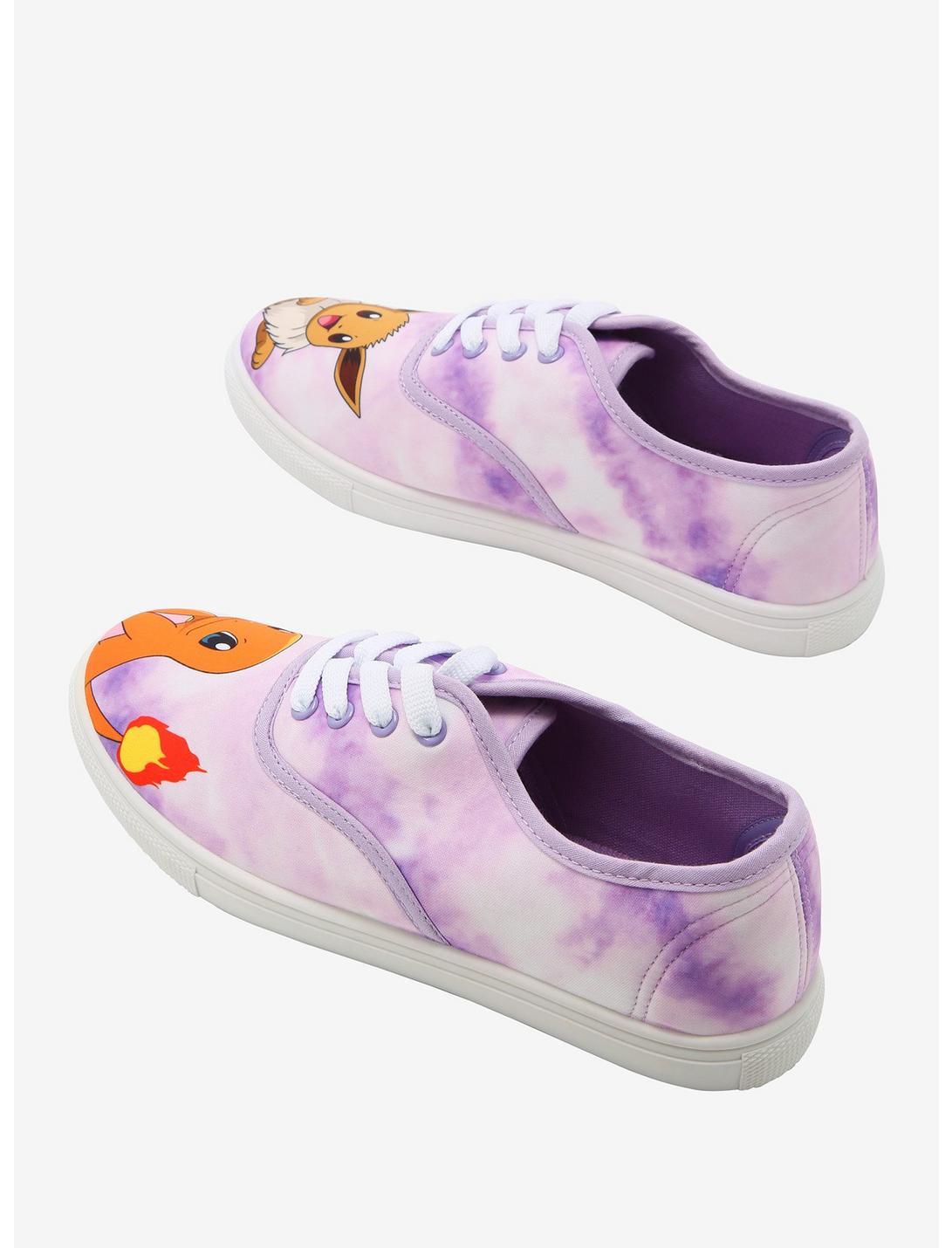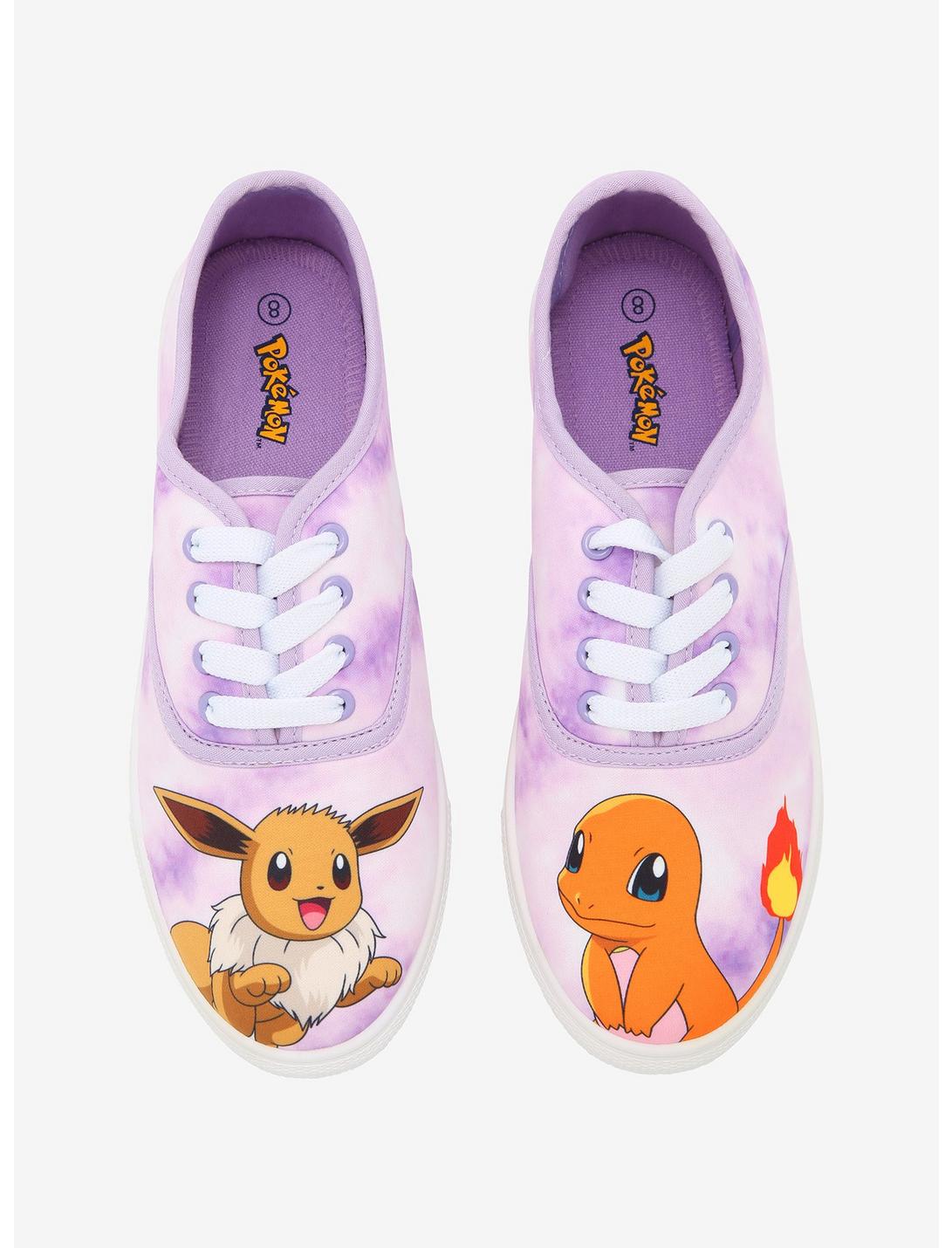 - ¡Todos necesitamos un mejor amigo que nos ayude a ser los mejores, como nunca nadie lo fue! Estas zapatillas moradas con cordones y teñido anudado cuentan con dos de tus Pokémon favoritos: ¡Charmander y Eevee! ¡Llévatelos a tu próxima aventura!