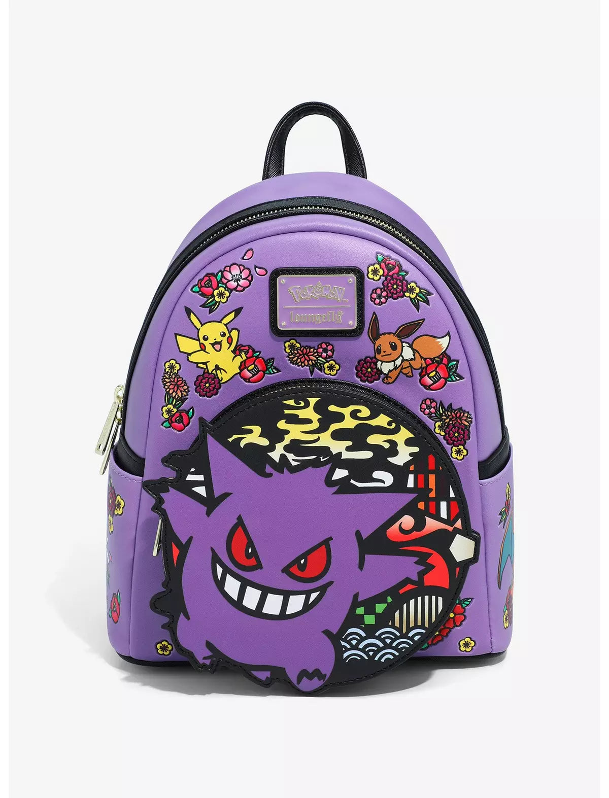 ¡Atrapa Pokémon con estilo floral con esta mini mochila Loungefly! Con un aplique de Gengar en el bolsillo delantero, el frente de este bolso incluye detalles grabados de Pikachu, Eevee y flores. Con retratos de Charizard y Scorbunny en los bolsillos laterales y retratos de Grookey y Sobble en la parte trasera, este bolso es perfecto para llevar en tu próxima sesión de entrenamiento.