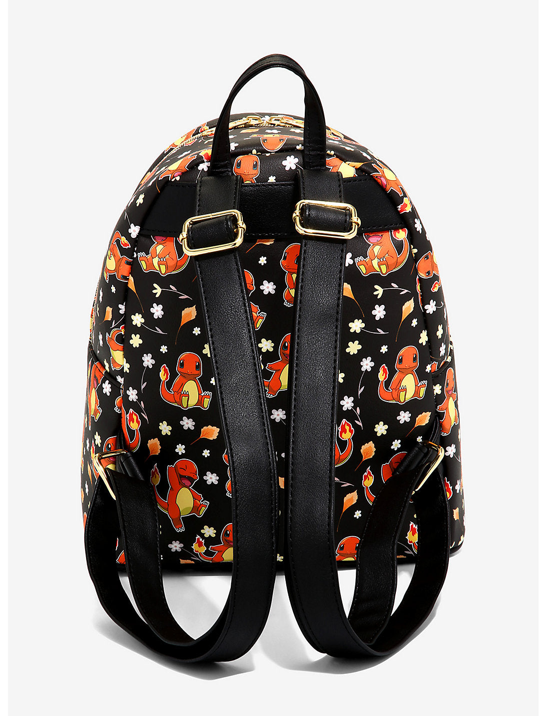 ¡Mantente iluminado en tu viaje para convertirte en el mejor Entrenador Pokémon! Esta mini mochila de Pokémon tiene un estampado integral de Charmander y margaritas. Correas ajustables, bolsillo frontal con cremallera, bolsillo interior abatible con forro naranja y herrajes en tono dorado.
