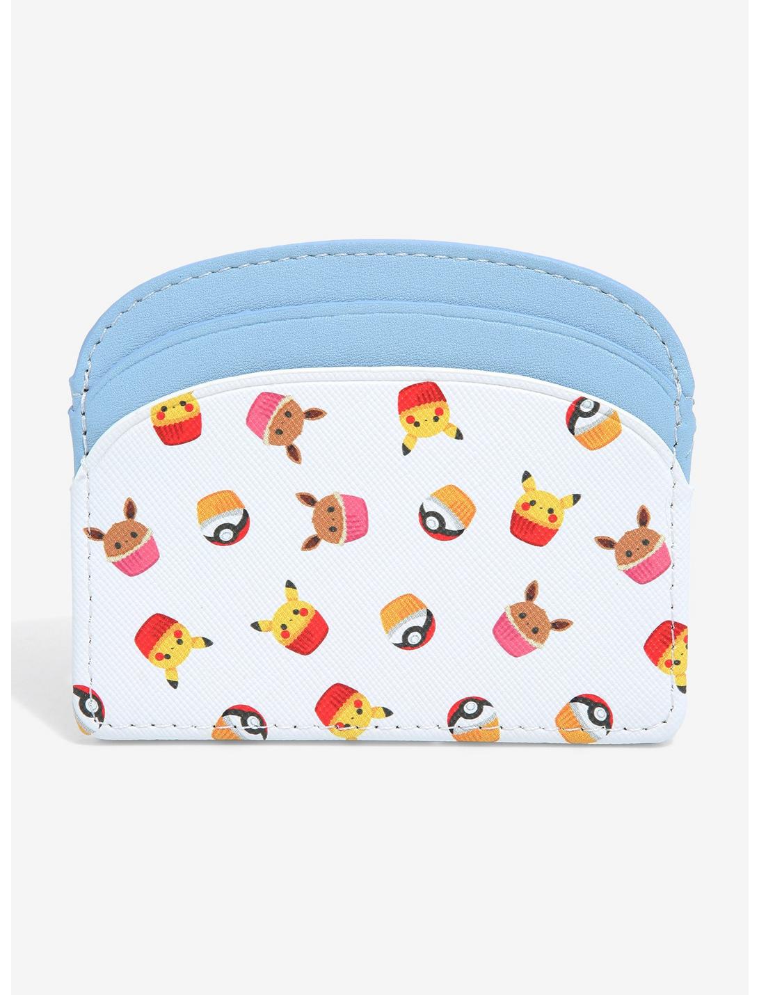 ¡Lleva tu Tarjeta de Entrenador, Pokémon Dólares y tal vez algunas Insignias de Gimnasio con un poco de ayuda de tus Poké amigos favoritos, Eevee y Pikachu! Con su apariencia de adorables cupcakes por un lado y disfrutando juntos de un picnic de bayas por el otro, este tarjetero es el accesorio perfecto para acompañarlo en su viaje para convertirse en el mejor. Cuenta con cuatro bolsillos para tarjetas y un bolsillo central.